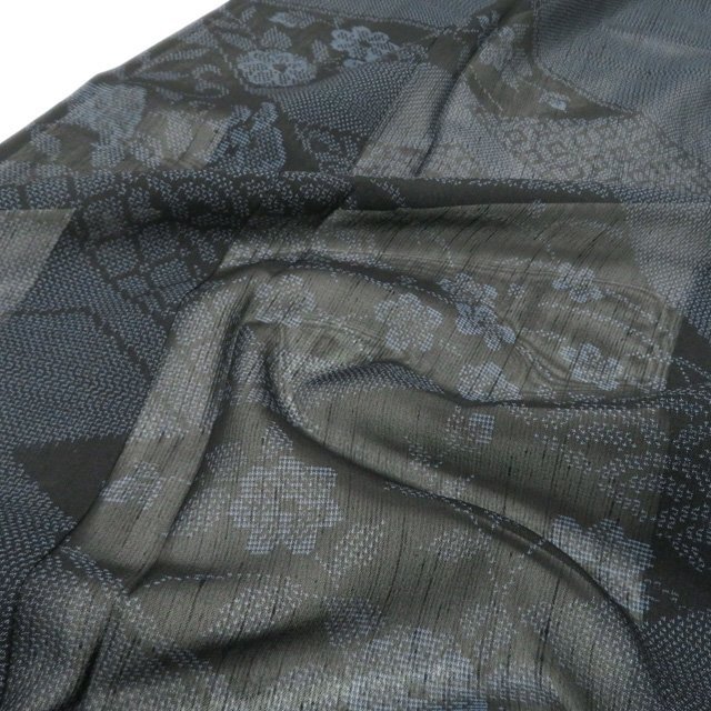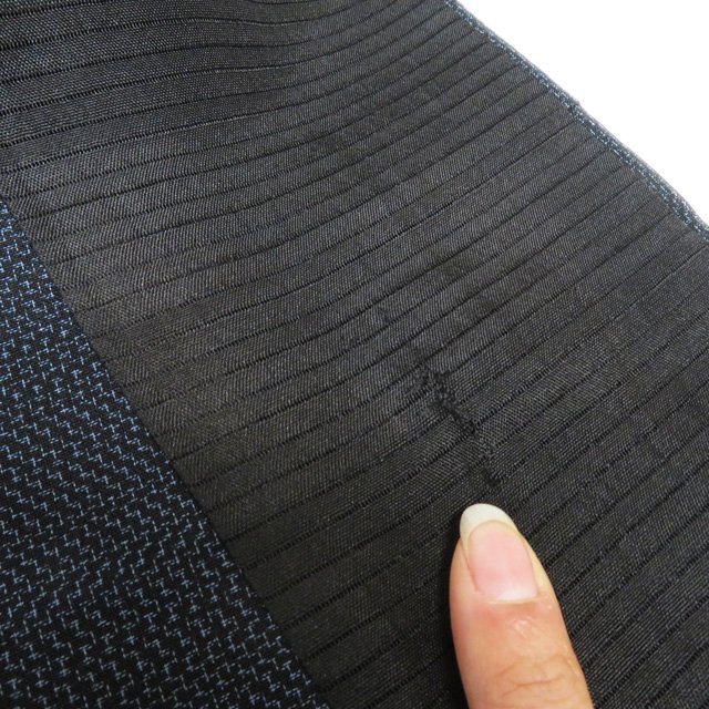 丈161.5cm(+7) 裄64.5cm(+2.5) 袖丈49cm(+4) 前幅24.5cm 後幅30.5cm ※サイズのお直し、承ります。 (身丈のみ、身幅のみのお直しは承っておりません) ※身丈は肩から測っております。 ※()内は※()内の数字はお直しで直せる長さを示しています。お仕立て直しの場合は胴裏を付け替えるため、さらに長く直せる場合があります。詳しくはお問い合わせください。 単位:cm 素材 正絹 商品ランク A ●着用時期 7月、8月(+-2週間) ●着用シーン 観劇、ご友人との食事、お買い物など ●お色 濃紺色 黒色 結城紬は、茨城県結城市を中心として、主に茨城県、栃木県の鬼怒川流域で作られている絹織物です。 蚕の繭を煮て柔らかくして広げた真綿から手でつむぎだす「紬糸 (つむぎいと) 」と呼ばれる糸は、柔らかく、空気をたくさん含むためにとても温かい優しい素材です。 「三代着て味が出る」と言われるほど丈夫で、着るたびに味わいが増していく、伝統の技術が生み出した至高の美を是非お手元でご堪能下さいませ。 内襟に一部キズがございますが、他は綺麗な未使用のお品物です。 居敷当の付いていないお品物です。 涼やかな和の装いをお楽しみください。 写真に写っている着物のみの販売で、帯等の付属品はついておりません。 一部商品は実店舗・他サイトでも並行して販売しておりますので売り切れの際はご了承ください。 その他多数販売中 gu- | ||||||
