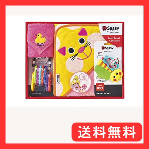 「Sassy(サッシ) サッシ・出産祝いおくるみセット キャット GFSA7501 4個 4996766033924」▼4996766033924▼(商品説明)かわいいキャット/-/4996766033924・Color:キャット・パッケジ個数:1・商品サイズ フド付きバスタオル:約77.5×77.5cm/重量約198g、ミニタオル:約25×25cm/重量約23g、歯固め:W10.4×D3.2×H20.3cm/重量71g、リング:W10.2×D6×H20.3cm/重量98g・知育トイとタオルのギフトセット・製造国 中華人民共和国・セット内容・付属品 セット内容各1 NZSA9451 サッシ・ミニタオル/ピンク/袋入 NZSA522 サッシ・フド付きバスタオル/イエロキャット/袋入 TYSA80746 カミカミてんとうむし/(リンク・アロング・レディバグ) TYSA80044 つなげてリング/(オリング・リンクス)アメリカの知育トイブランドSassy(サッシ)。 赤ちゃんの脳・体・情緒の発達研究に裏づけされたカラフルなデザインが特長です。そんな鮮やか