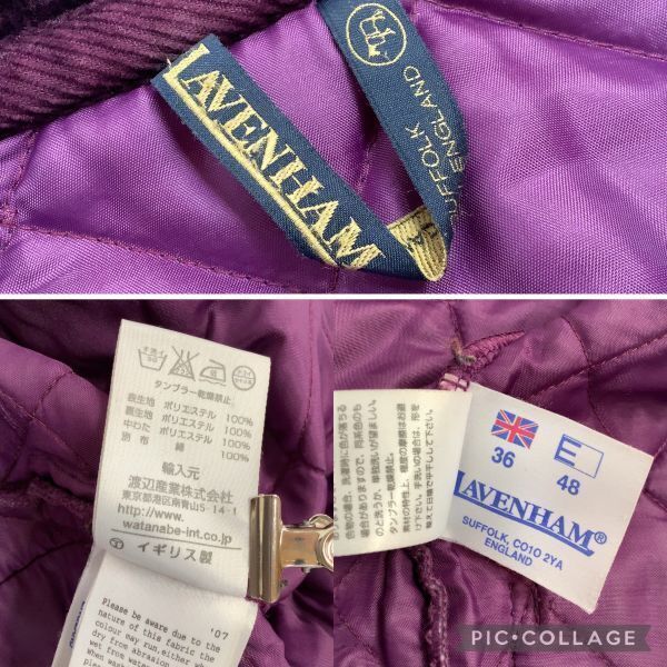 イングランド製 LAVENHAM ラベンハム キルティングジャケット レディース 36 M相当 パープル 紫 中綿エコダウン