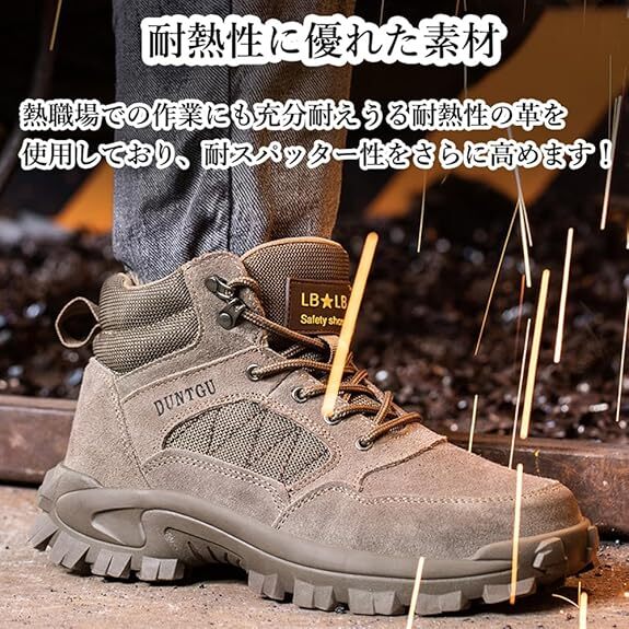 【つま先保護設計】つま先部分には高品質鋼製先芯入りので、金槌の衝撃や刃物の落下など作業中の事故からつま先を保護できます。