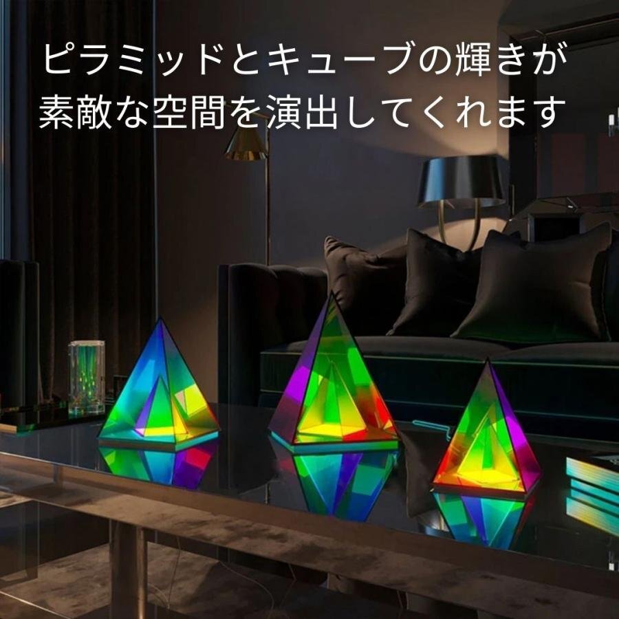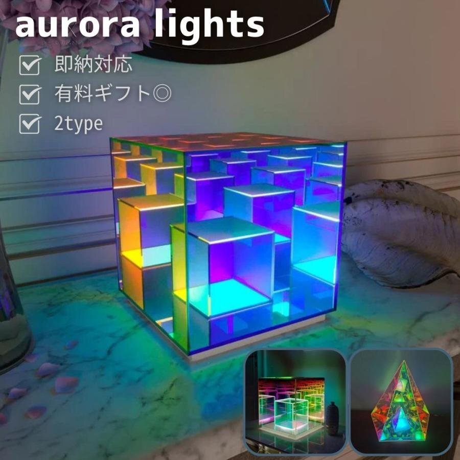【2種類から選択】【購入後メッセージ下さい】インテリア オーロラ テーブルライト USB 3色切替 ピラミッド型orキューブ型