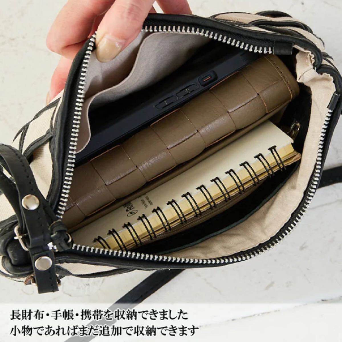 経年変化を楽しめる本革と軽量なキャンバス素材を