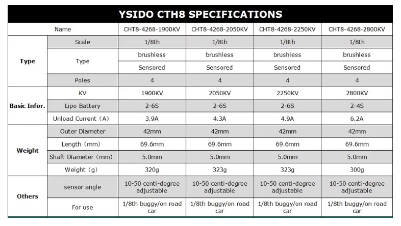 YSIDO 1/8 RC用 ブラシレスモーター(センサード)2250KV 新品・未開封品 ハチイチバギー・ハチイチトラギーなどに