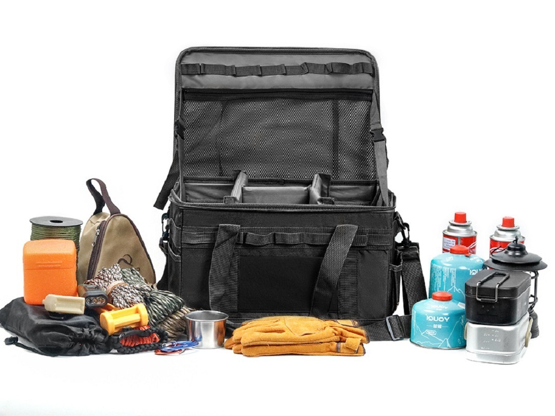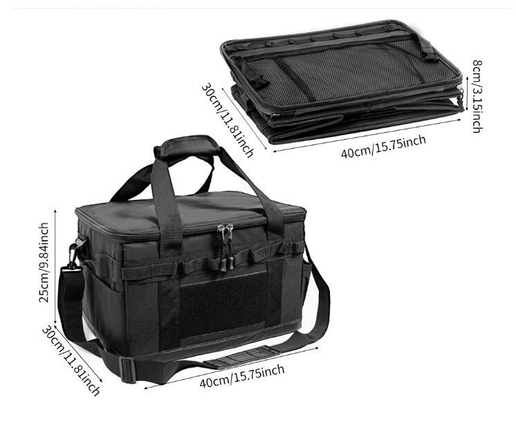 キャンプ用 超高品質 多機能收納ケース 自立式収納バッグ 厚くして衝突を防ぐ アウトドア 野外登山 30x40x25cm 黒