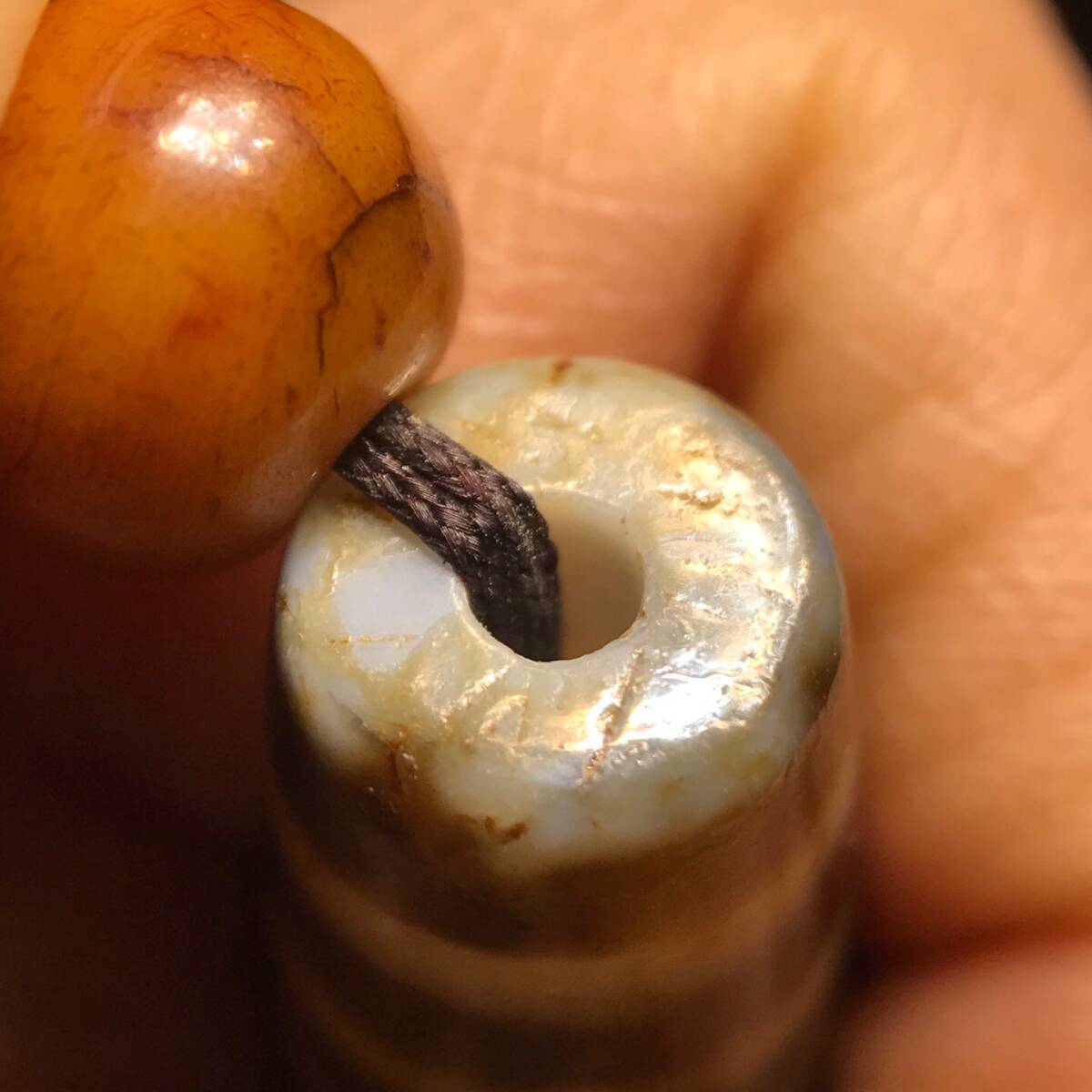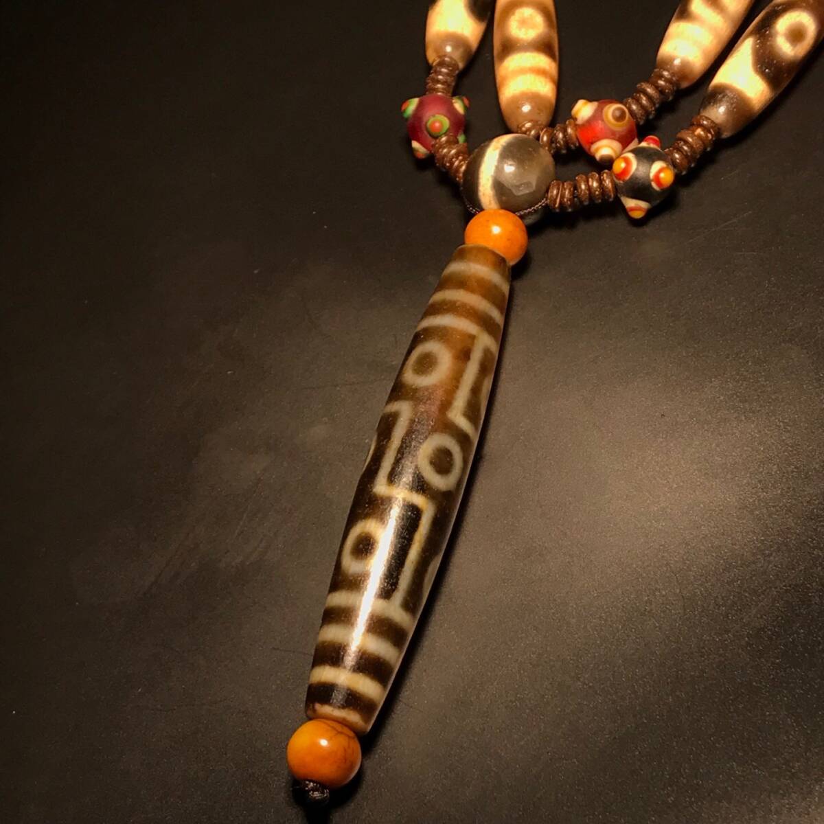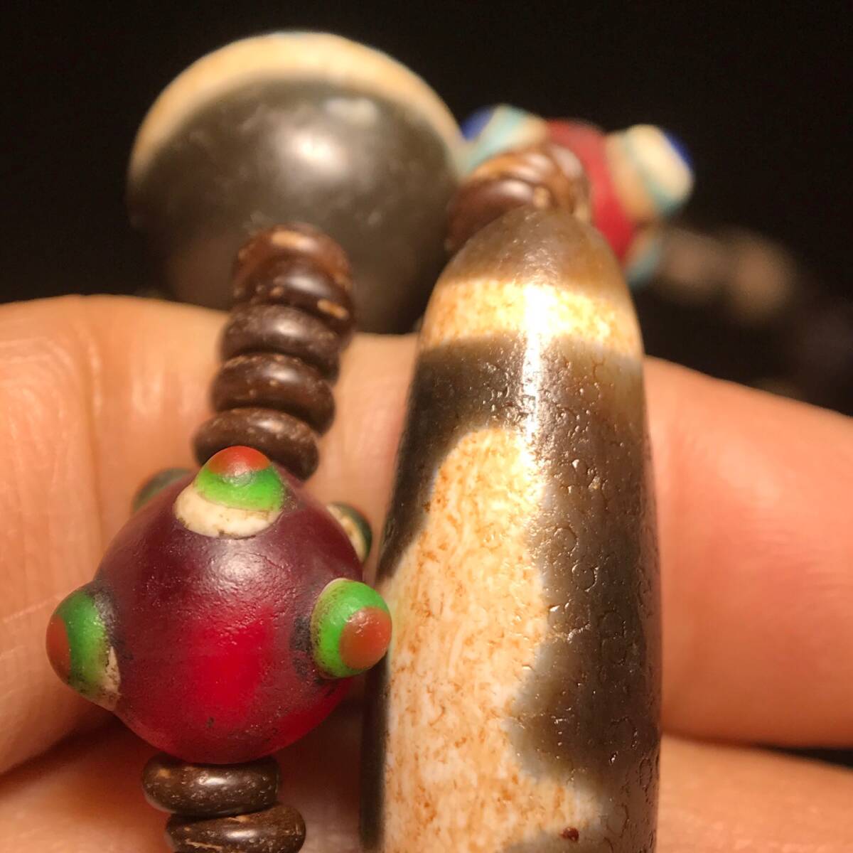 ▽鴻▽ 瑪瑙製 細密彫 多寶天珠 九眼天珠ネックレス手持 置物 古賞物 中国古玩 中国古美術