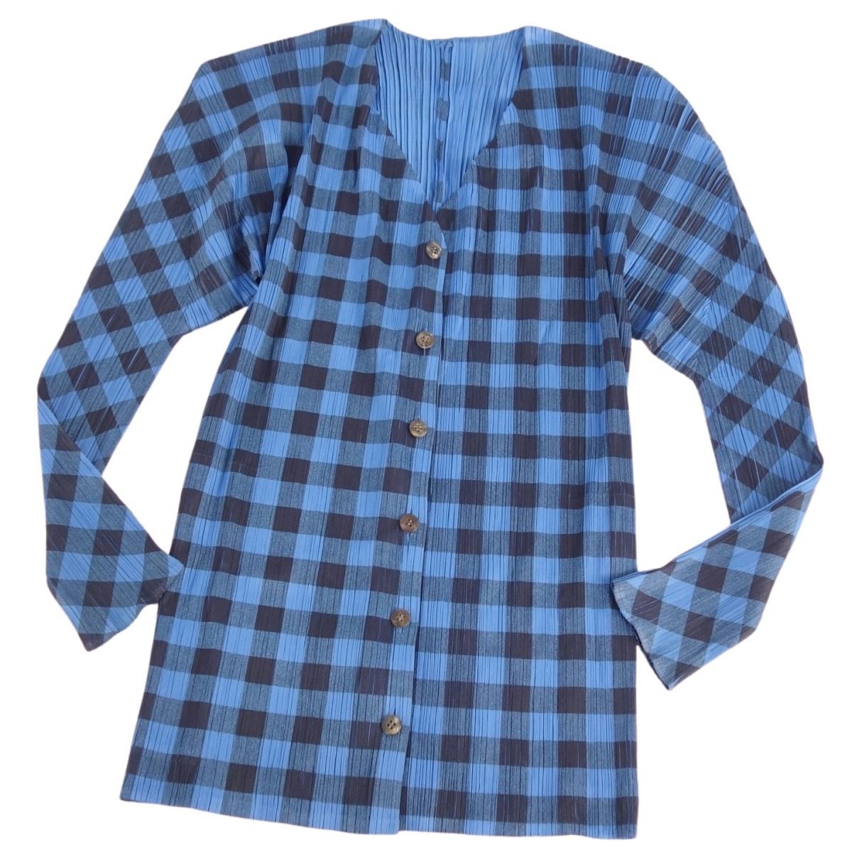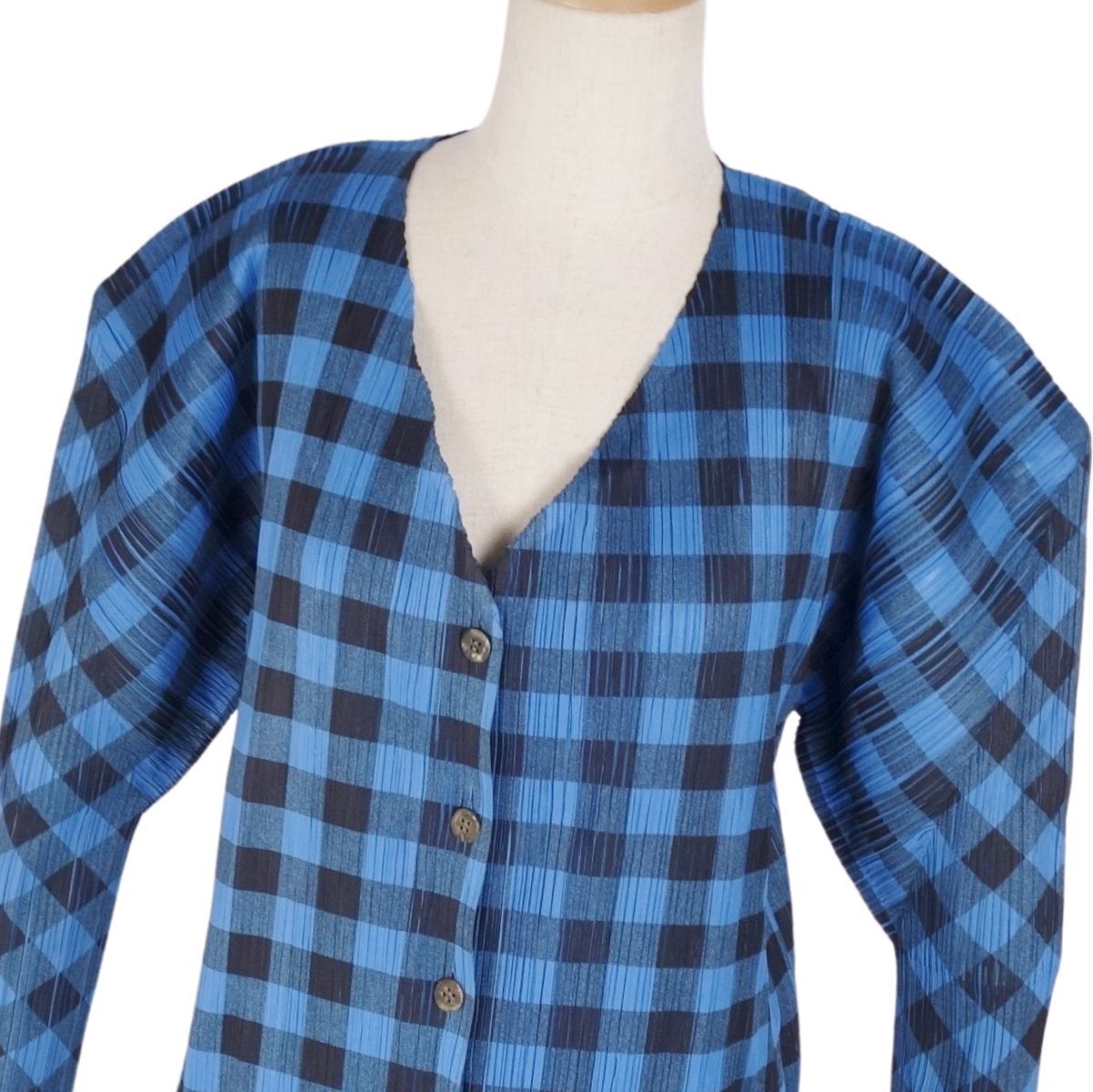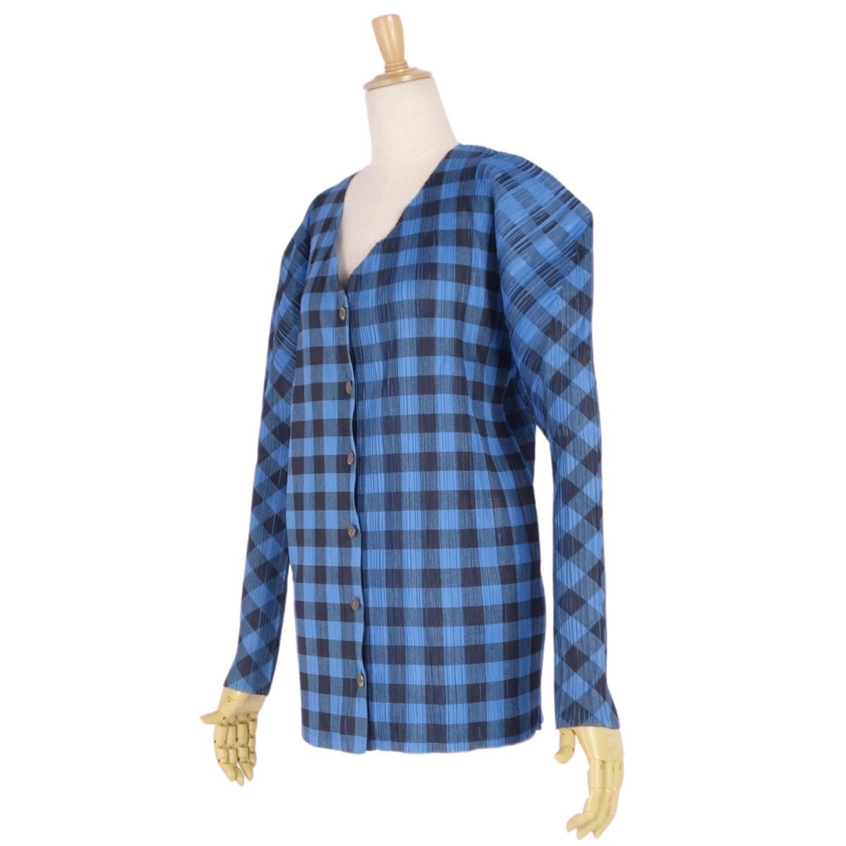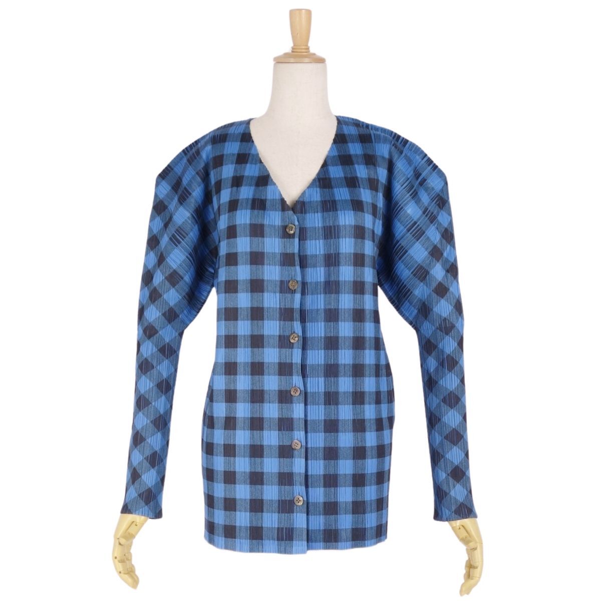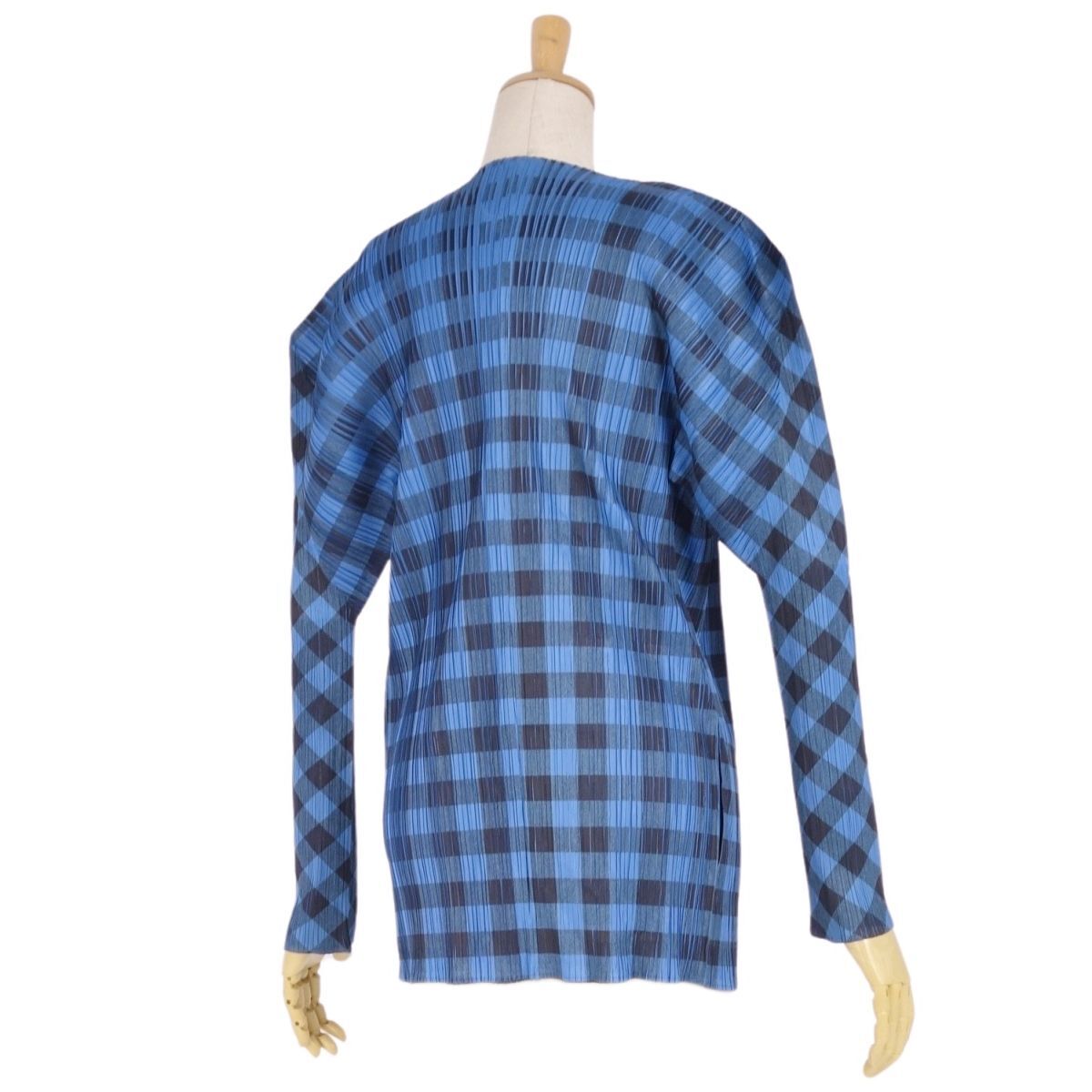 | 美品 プリーツプリーズ イッセイミヤケ PLEATS PLEASE シャツ ブラウス ロングスリーブ 長袖 チェック 3(L相当) ブルー |