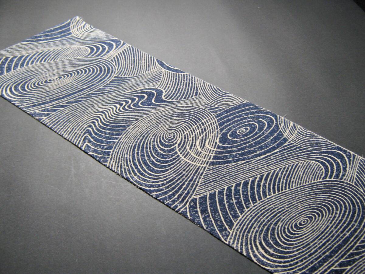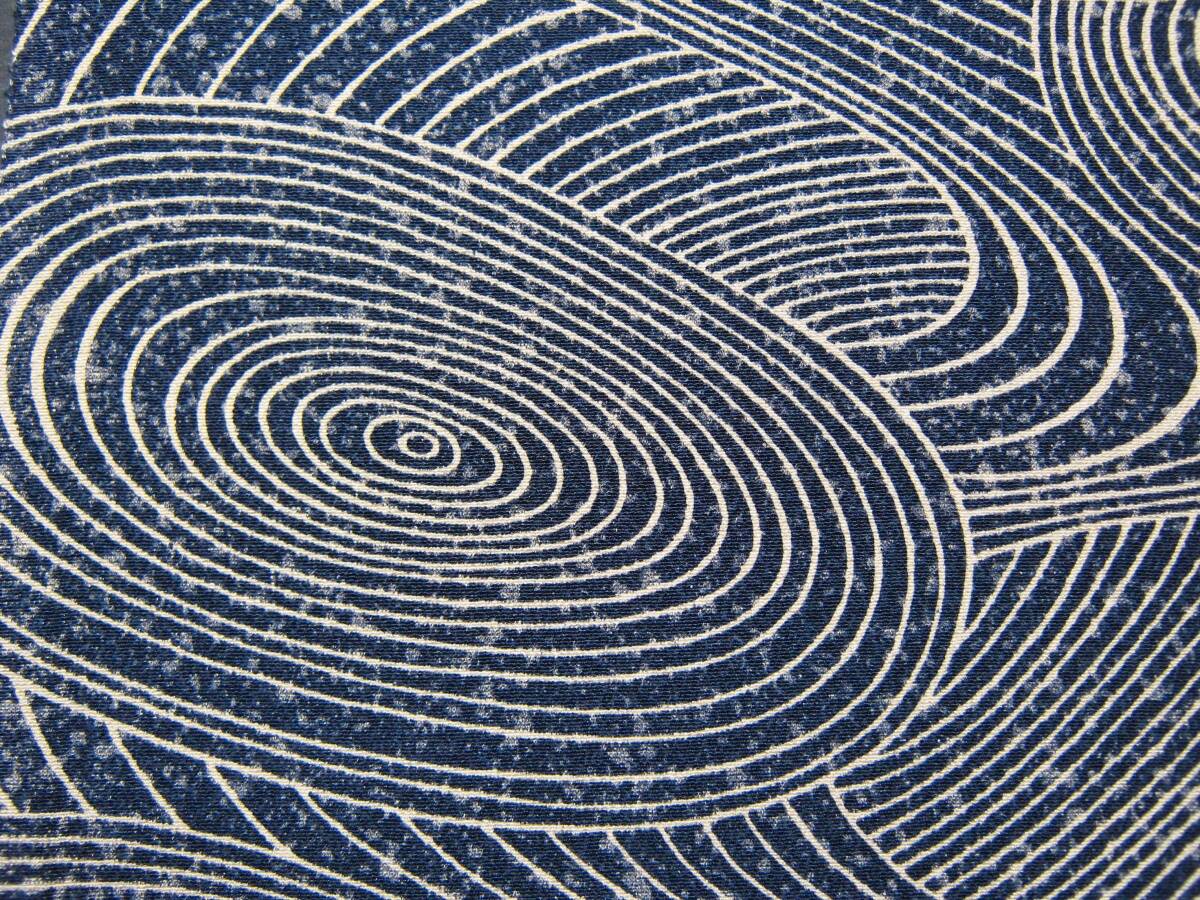 古布 半衿【正絹縮緬/渦潮 波模様 糊散らし 薄べーじゅ×濃藍】はぎれ
