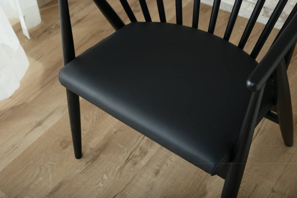 ■素材:木部:アッシュ無垢材、座面:PVCレザー