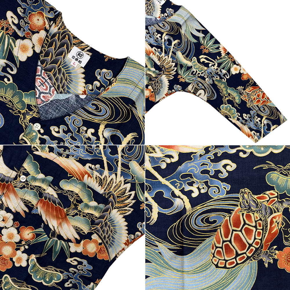 お祭用品/肉襦袢 まるわ日本橋 鯉口シャツ 鶴と亀 [R2504-20紺青] LL(大人用)