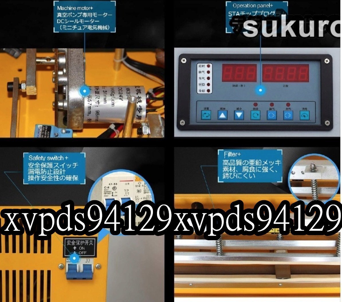 ★状態:新品未使用 【亜鉛メッキ材】亜鉛メッキの材料を使って加工し、腐食に強く、さびにくく、耐久性が高いです。 【マザーボードとコントロールパネル】良いマザーボードを使用し、安定したパフォーマンス、使用寿命が長いです。パネルはデザインはシンプルで、より簡単な操作。 【安全保護スイッチ】漏電防止設計、操作と使用の安全を保障する。 【真空計装備】専用の真空計を装備しているため、真空状態が一目でわかります。インフレータブル/フットペダルインターフェースも装備しているので、より便利な操作。 【3つのモード+カウント機能】真空+シール、単独のシールと空気充填+シール3つのモードが選択あります。カウント機能は大量の製品のシール時の数量の統計に便利です。 型番:DZQ-500 TE 電源電圧:110V 包装速度:5-15回/分(手作業で協力する必要があります) ポンプパワー:120 W シールパワー:950 W サイズ:70*48*56 cm 重さ:55 kg シールサイズ:500*8mm