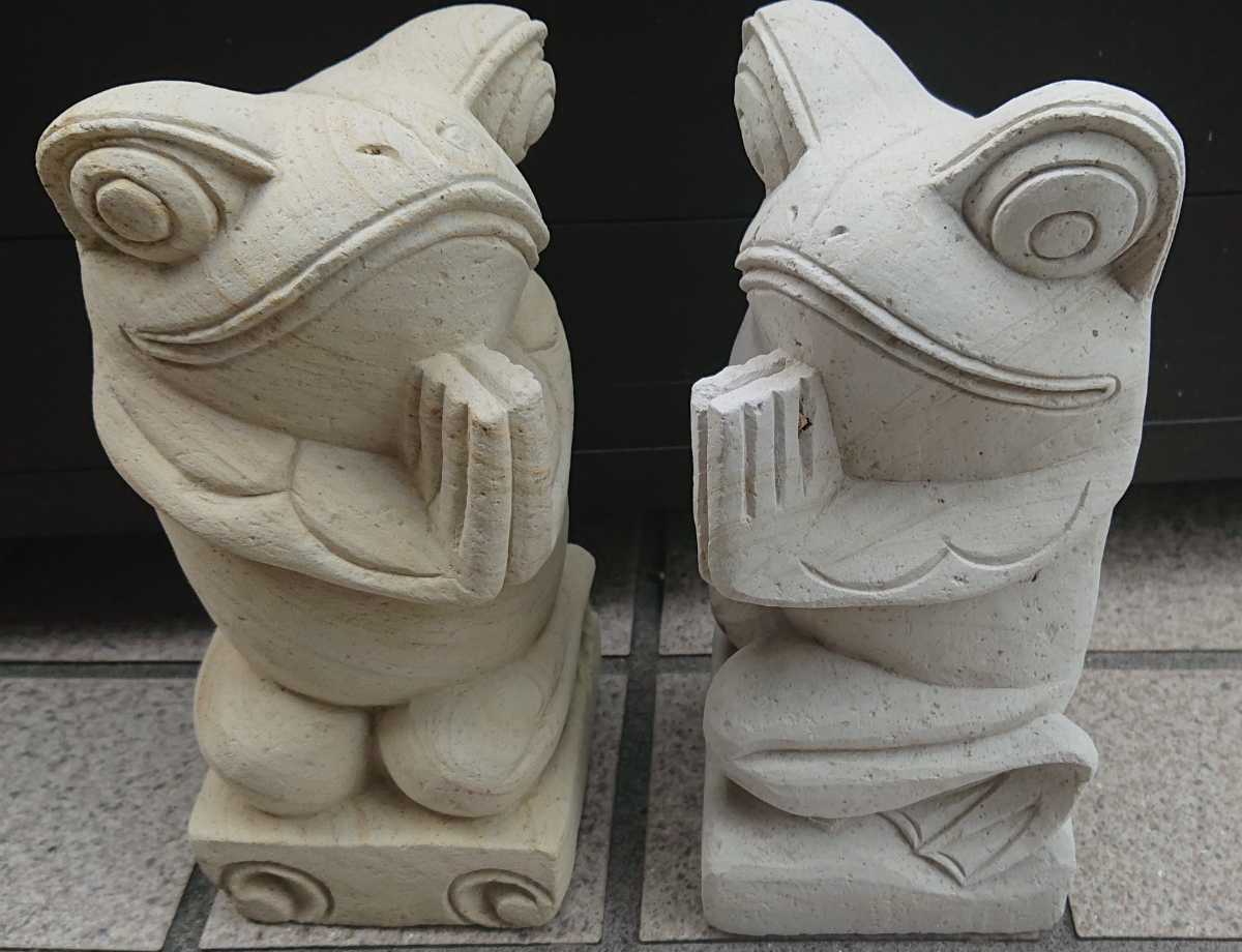 カエル 石像 (中) 二個セット 祈り アジアン雑貨 バリ パラスストーン