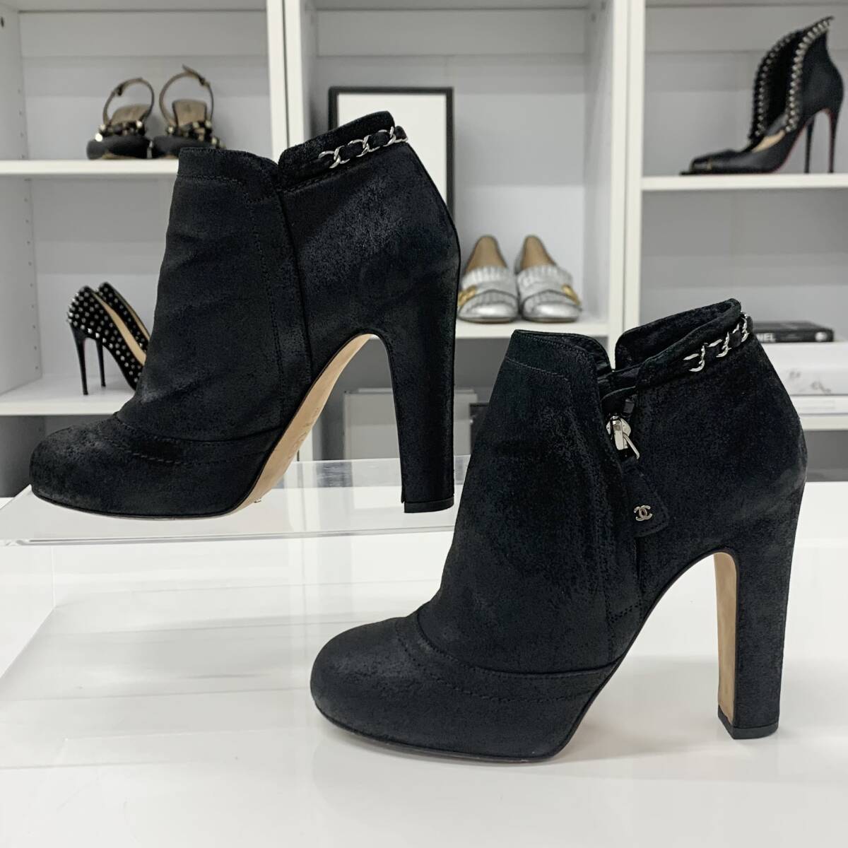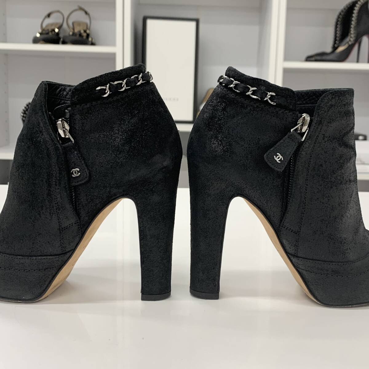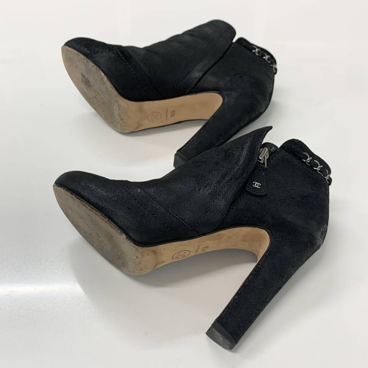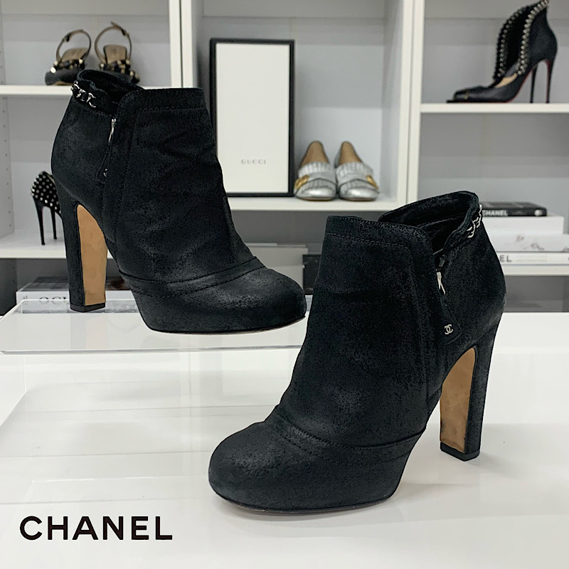 シャネル レザー ココマーク チェーン ショートブーツ ブラック