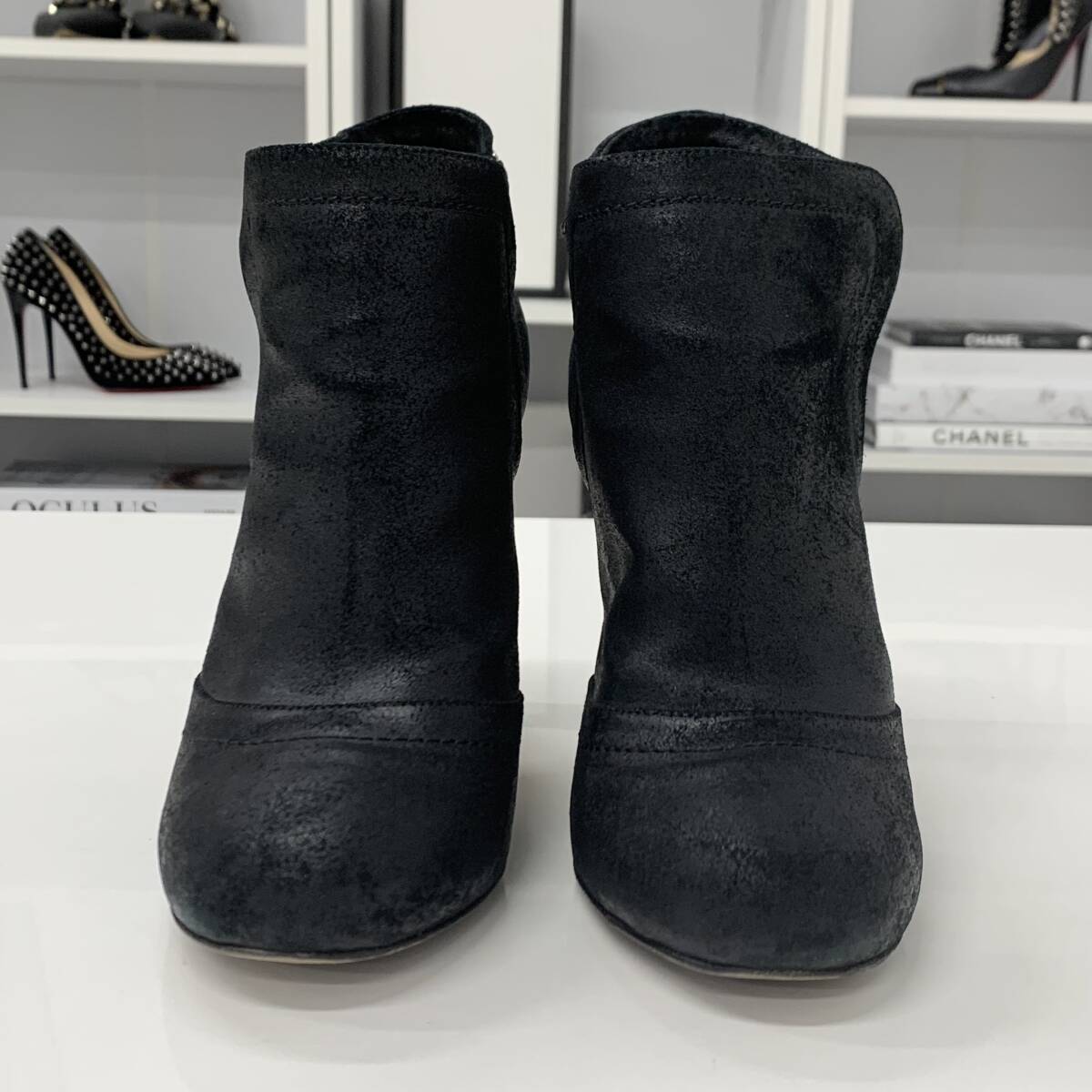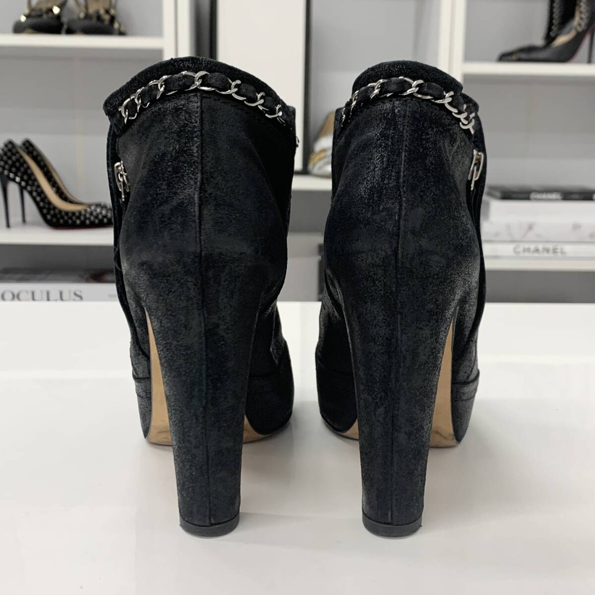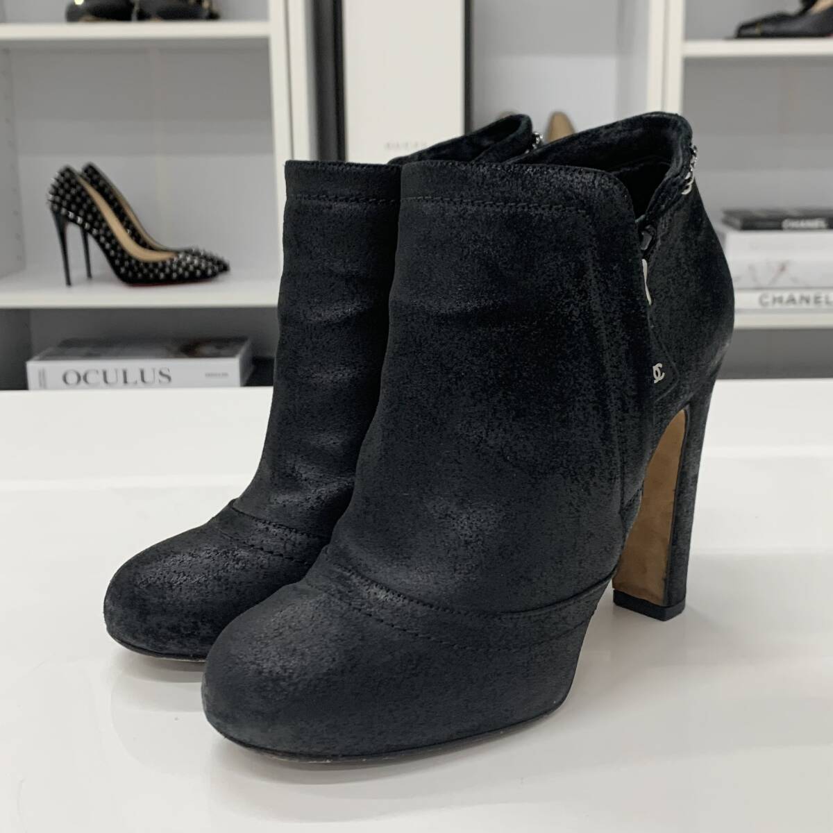 シャネル レザー ココマーク チェーン ショートブーツ ブラック
