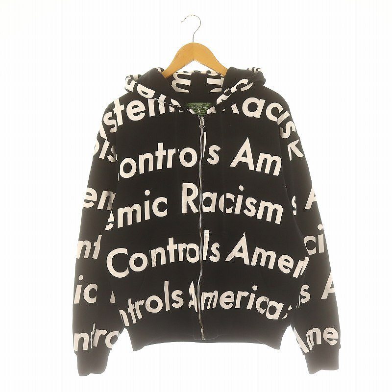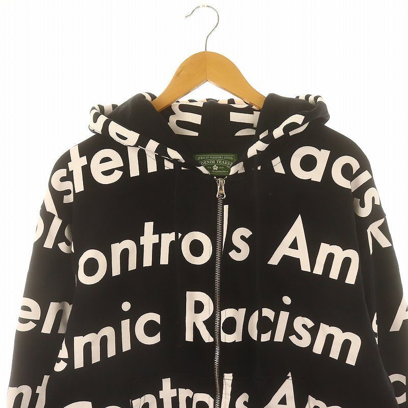 デニムティアーズ Systemic Racism Controls America Zip Up Hoodie パーカー フーディー ジップアップ L 黒 白 ブラック ホワイト