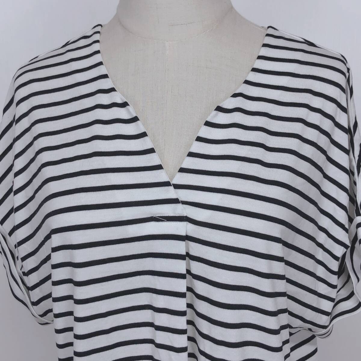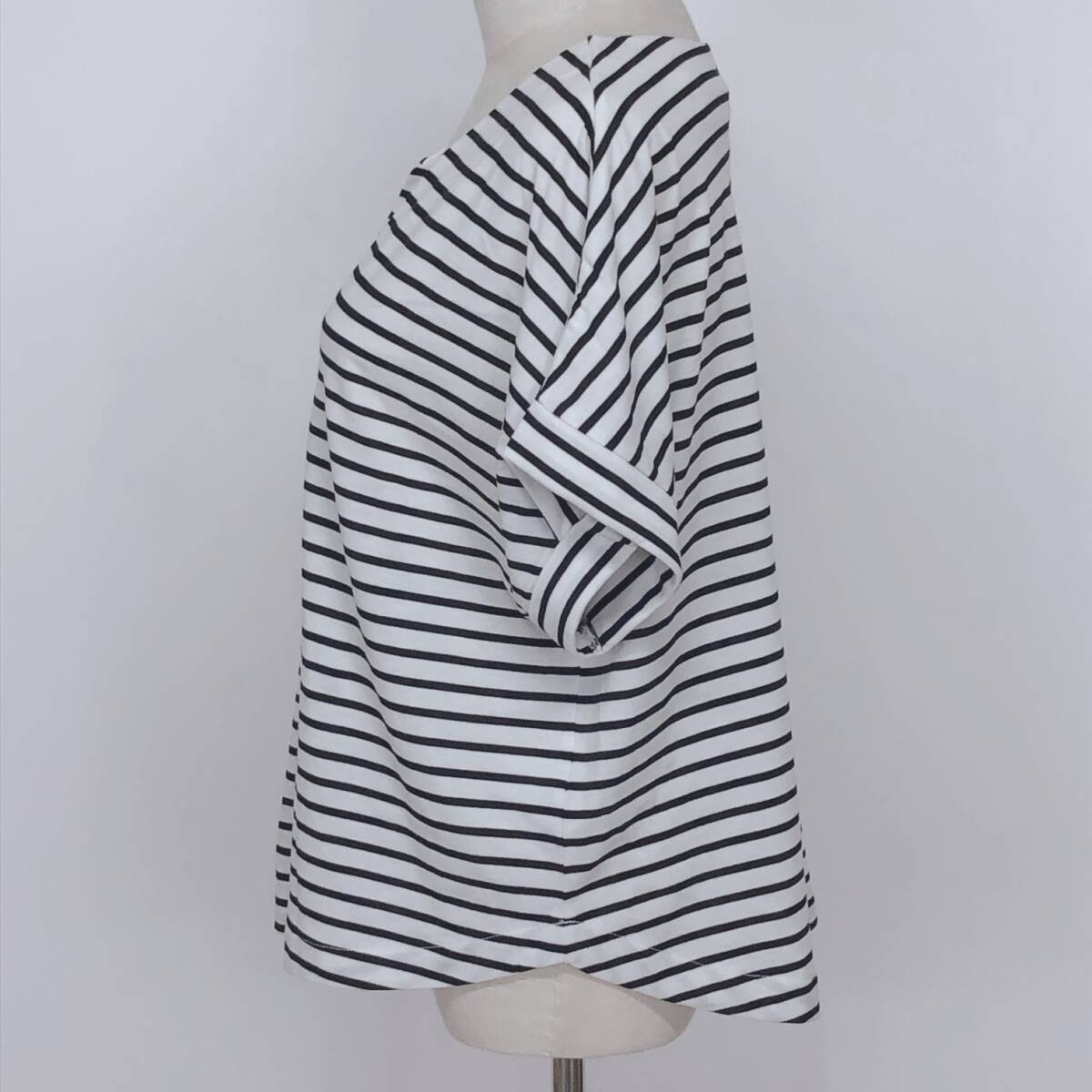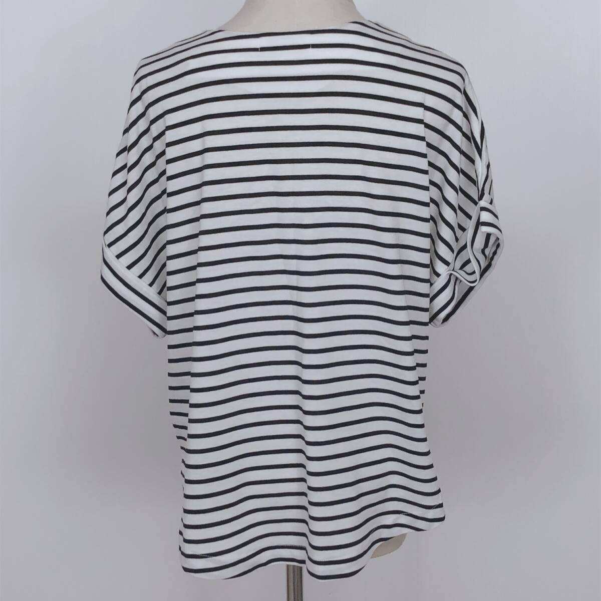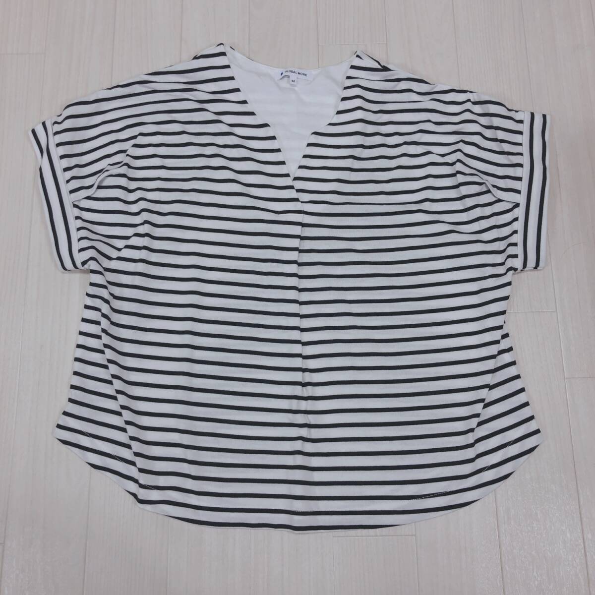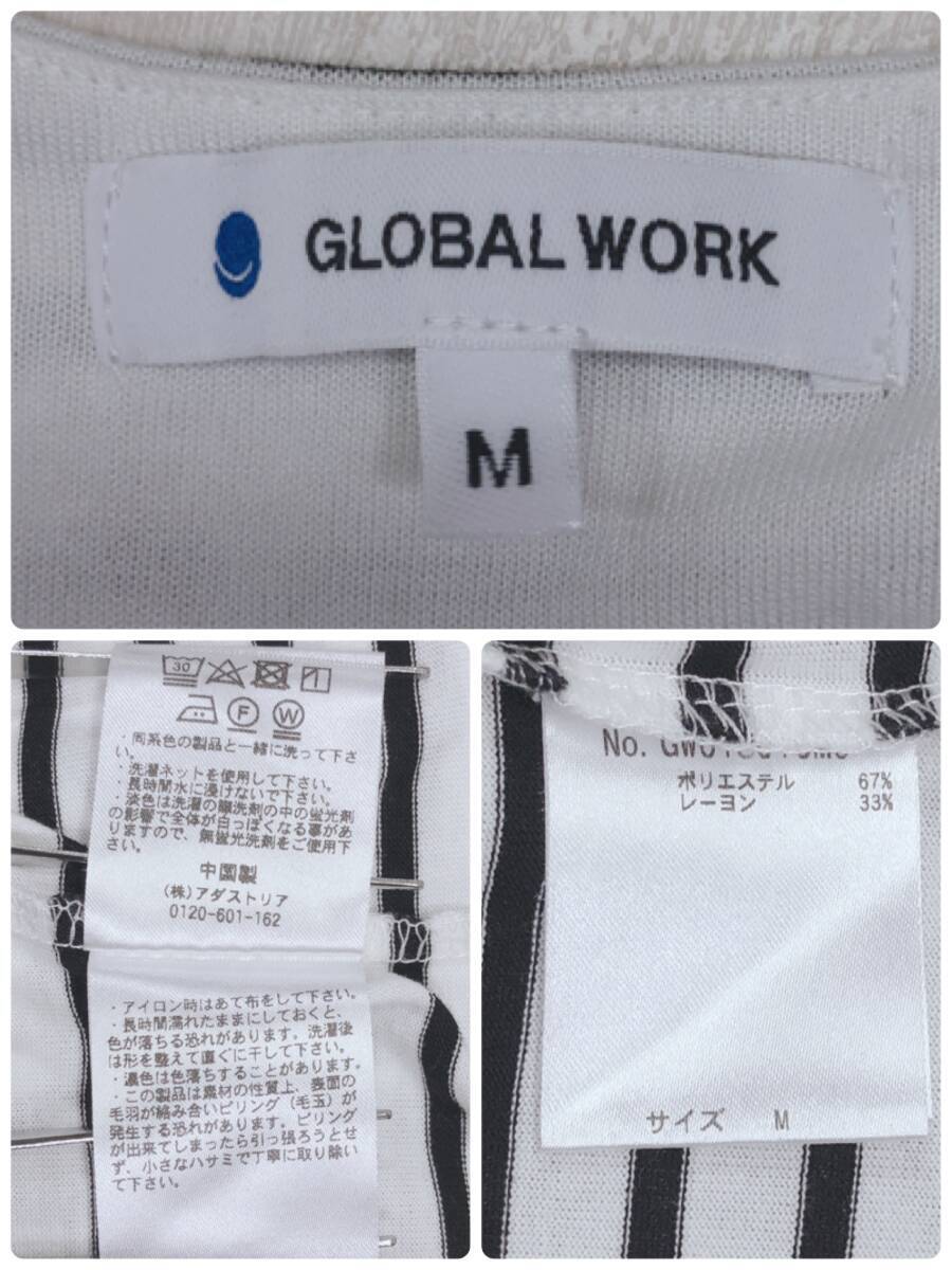 YX1333 美品 GLOBAL WORK グローバルワーク レディース トップス Tシャツ ラグラン袖 ギャザー 伸縮性 薄手 M 黒白 ボーダー涼しげおしゃれ