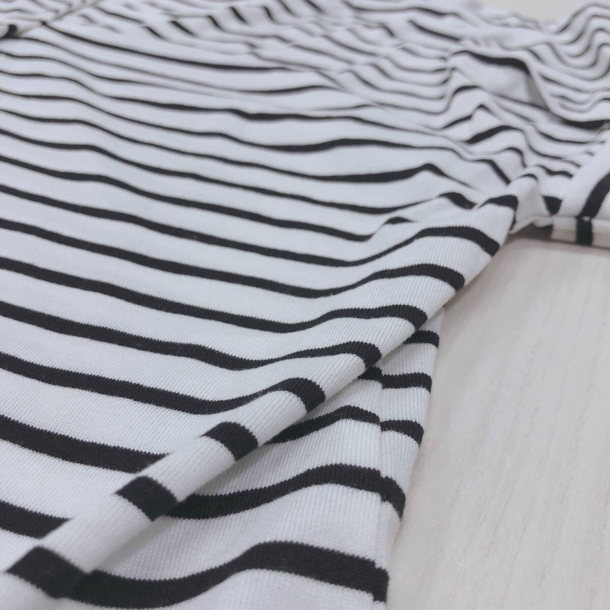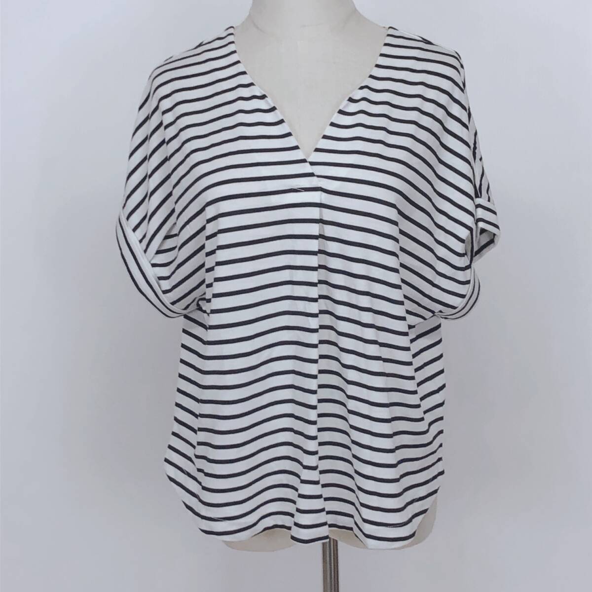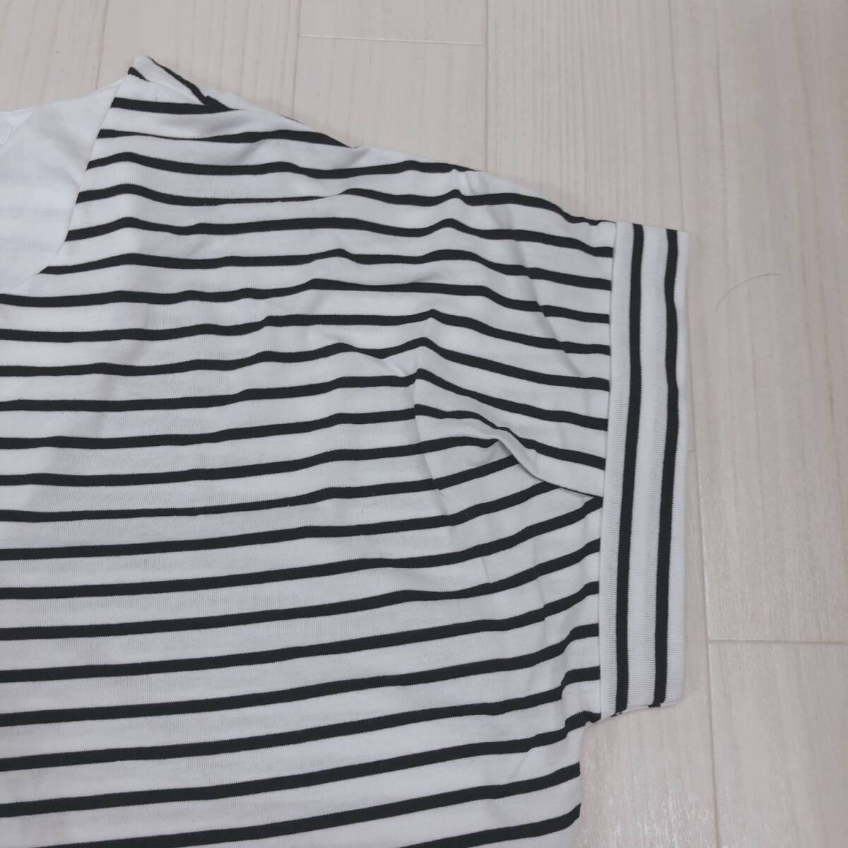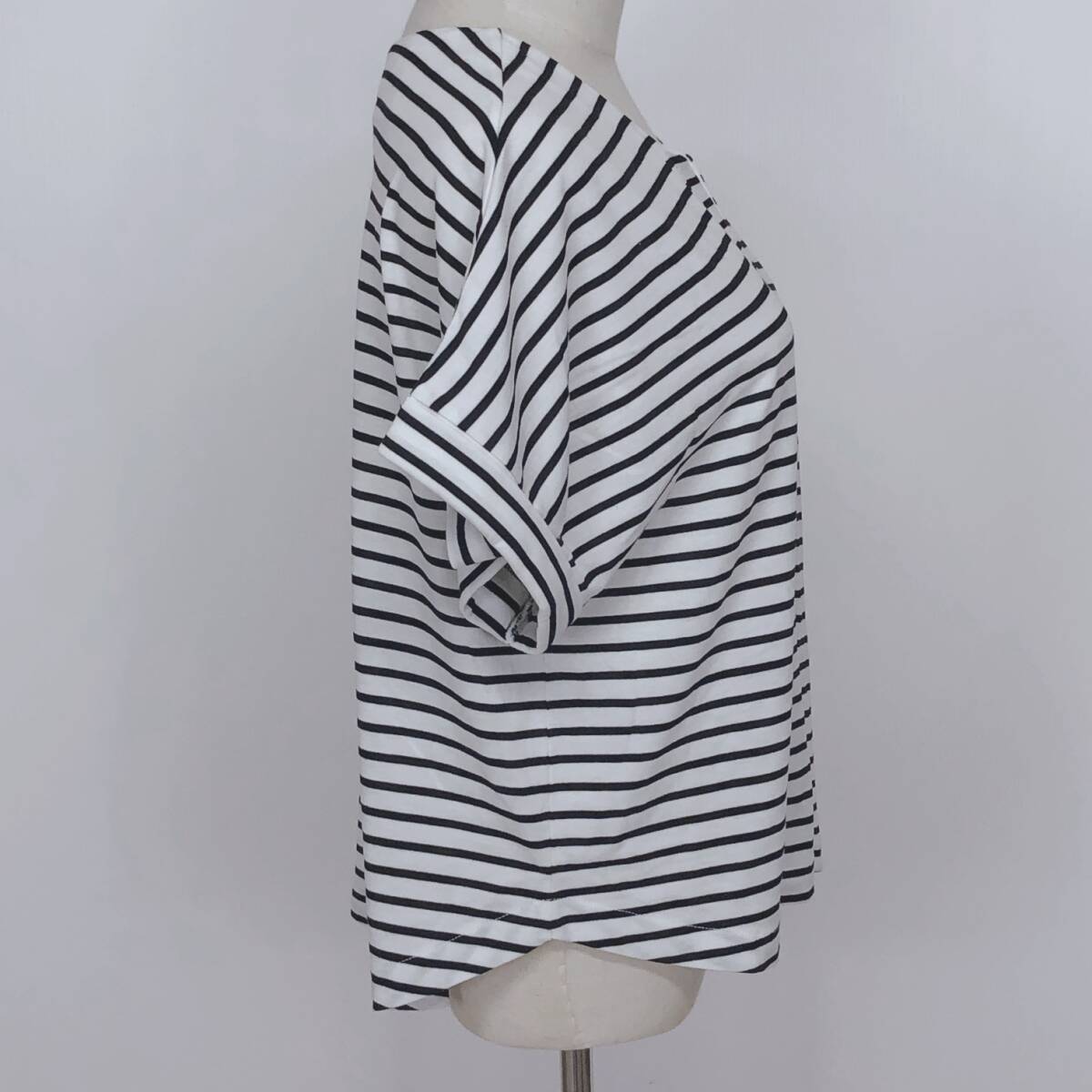 YX1333 美品 GLOBAL WORK グローバルワーク レディース トップス Tシャツ ラグラン袖 ギャザー 伸縮性 薄手 M 黒白 ボーダー涼しげおしゃれ
