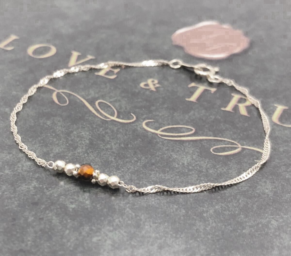 pt850 20cm プラチナ タイガーアイ ブレスレット スクリューチェーン0.9mm ミラーボール2.5mm