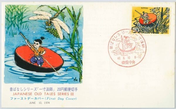FDC・初日カバー☆昔ばな第3集・一寸法師・3種・S49.6.10