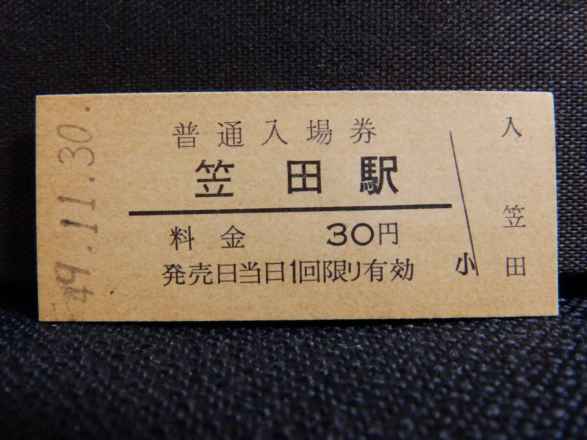笠田駅 硬券入場券 日本国有鉄道(国鉄)和歌山県 和歌山線 30円時代