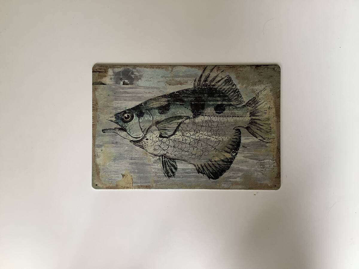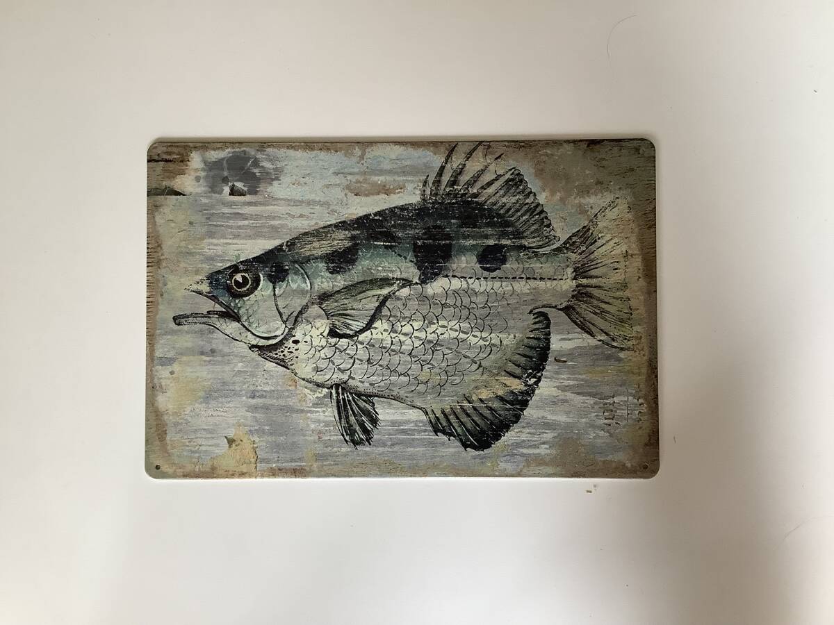 ブリキ看板 20×30㎝ フィッシング 魚拓 バス 図鑑 魚拓 FISH SHOP レトロ アメリカンガレージ インテリア 防水 新品 P-898