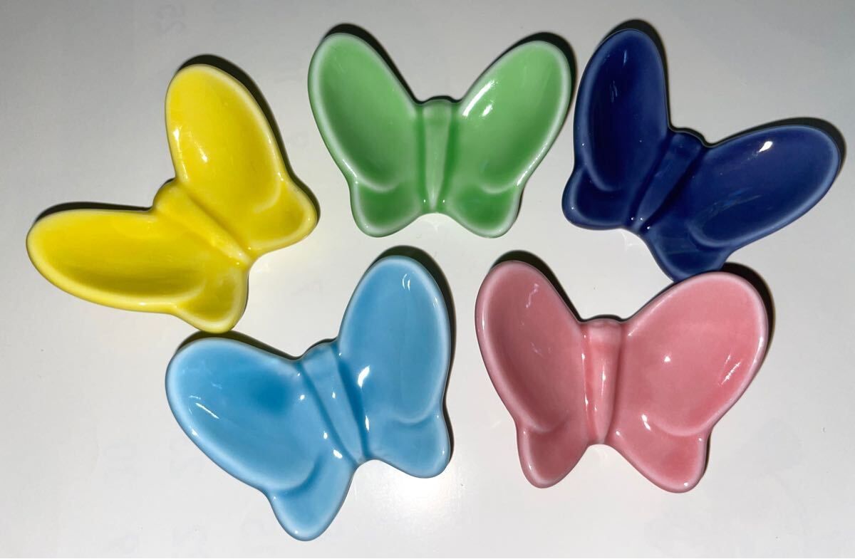 ちょうちょ型 蝶々 箸置き 陶器 5色 陶器 5客揃え未使用