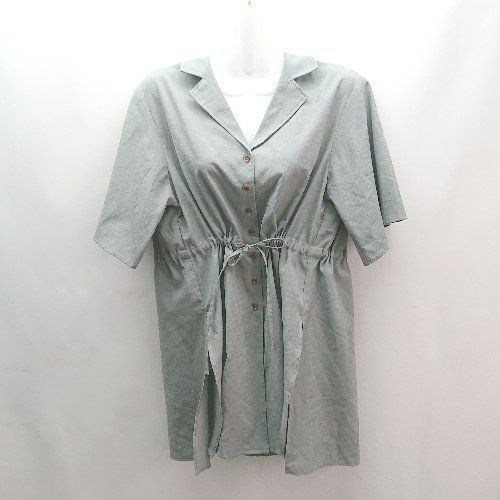 ◇ apart by lowrys フロントボタン ウエスト絞り シンプル 涼しげ 薄手 半袖 チュニック サイズF グリーン レディース E