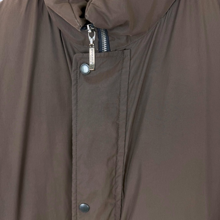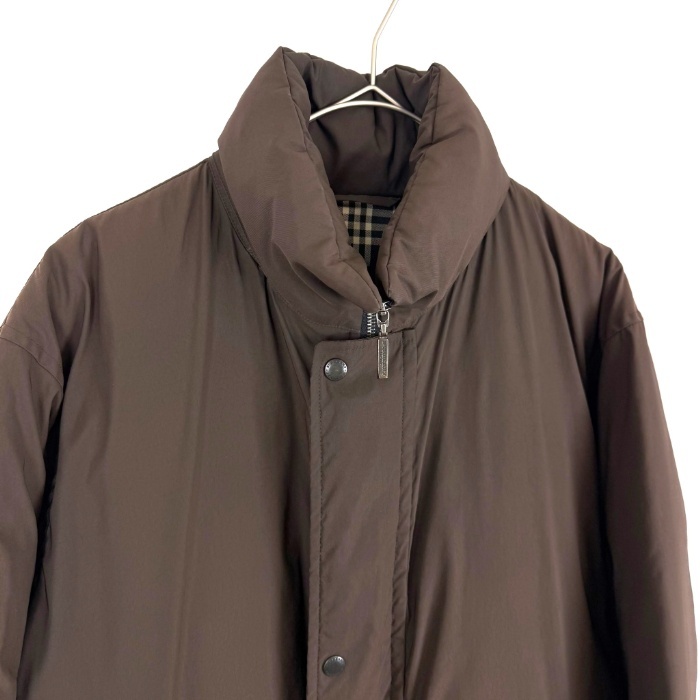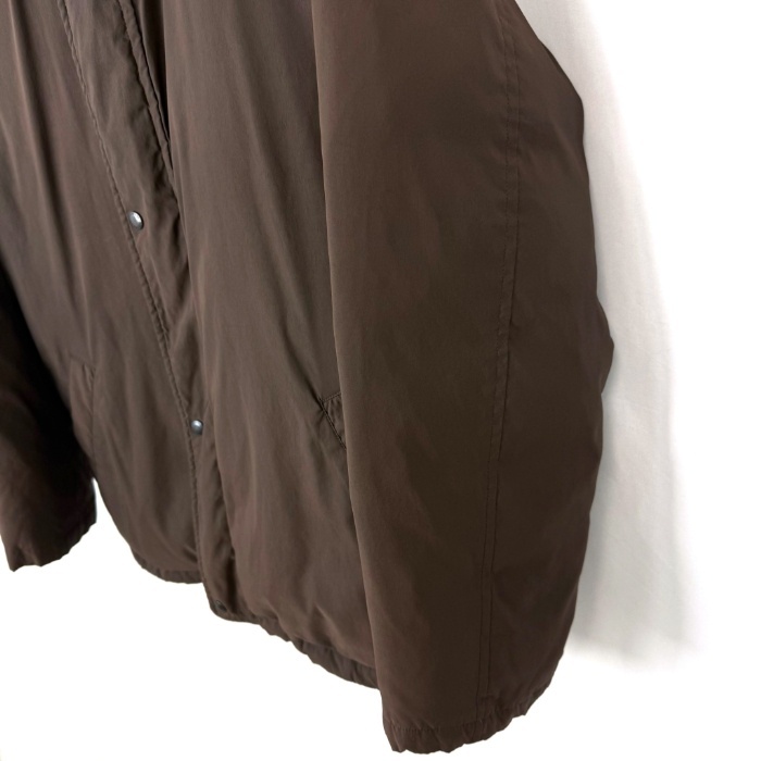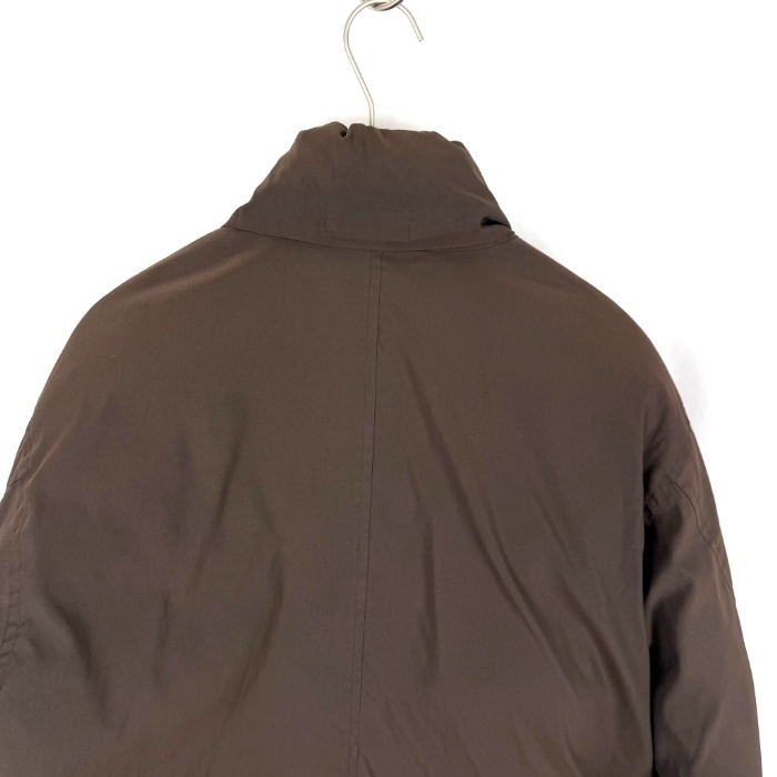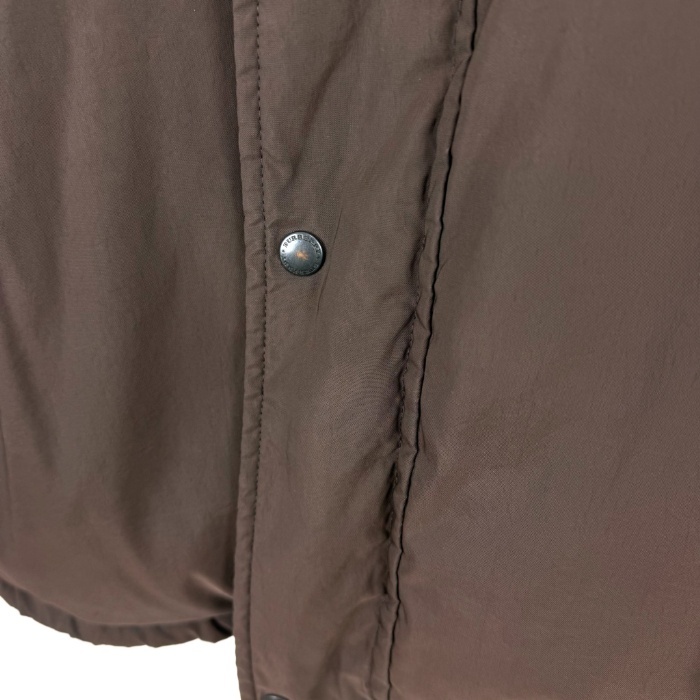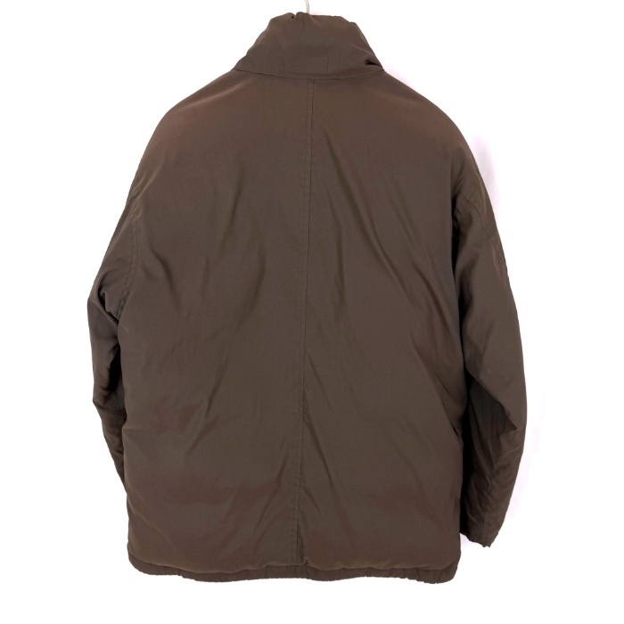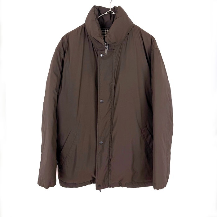 | 【コメント】 裏地がネイビー系チェック柄でおしゃれなダウンジャケットです。襟部分に薄手の隠しフードが収納されています。使用感が少々あり、首元内側に黄ばみ、裾、袖口にスレ、色褪せ、ボタンの色剥げがあります。目立つ汚れなどはなく、まだまだご着用いただけるお品物です。 |