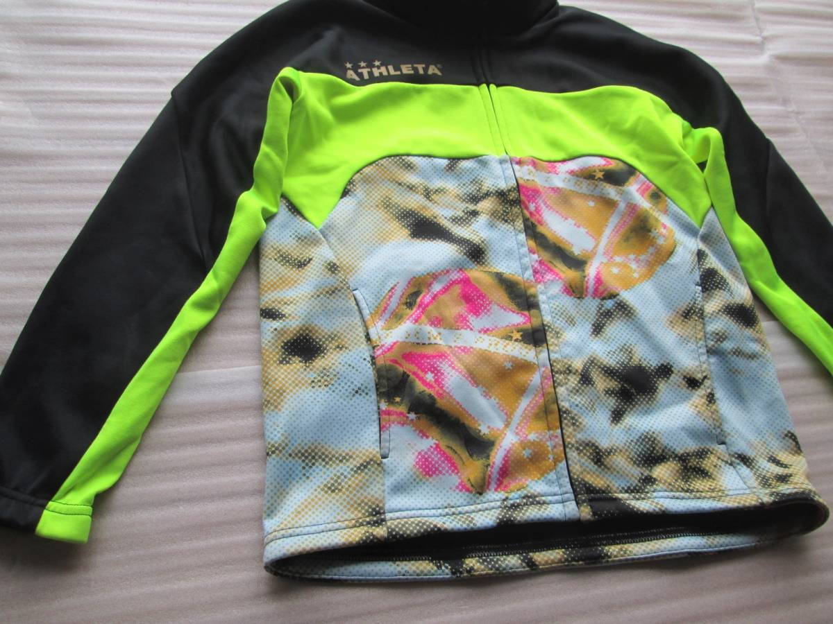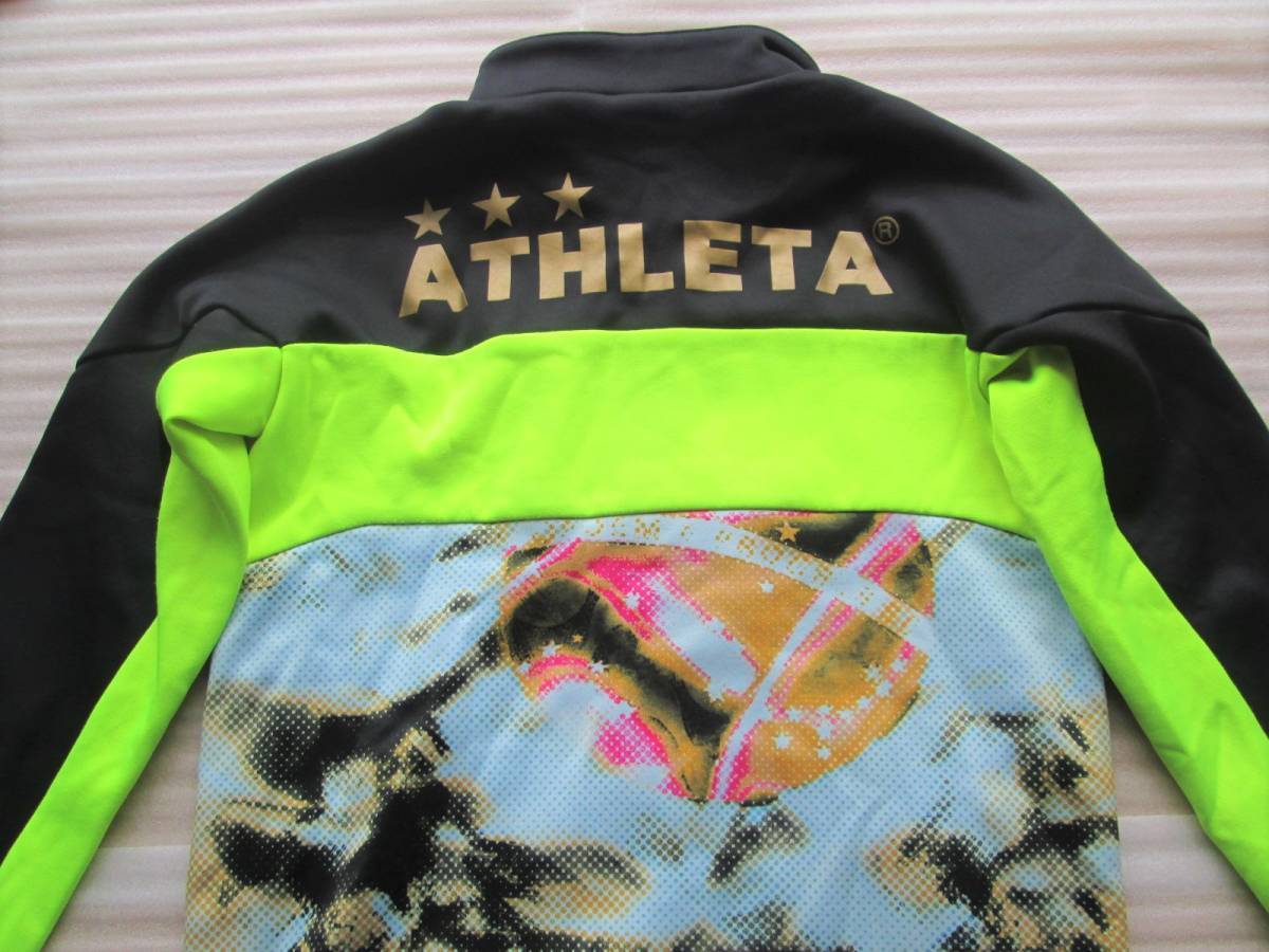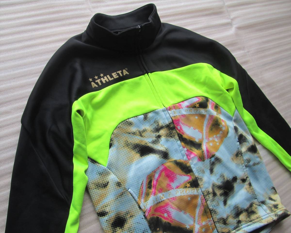 【未使用】ATHLETA フリース裏地 スウェット 防寒 ◆ 140サイズ 黒 ブラック 蛍光ロゴ オシャレなデザイン!