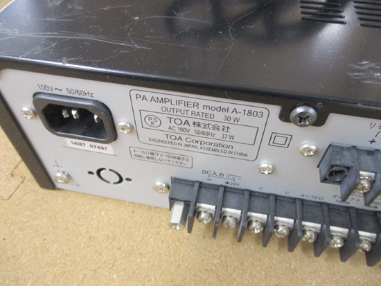 TOA PAアンプ A-1803 ③ 本体 電源コード ティーオーエー パワーアンプユニット 札幌市