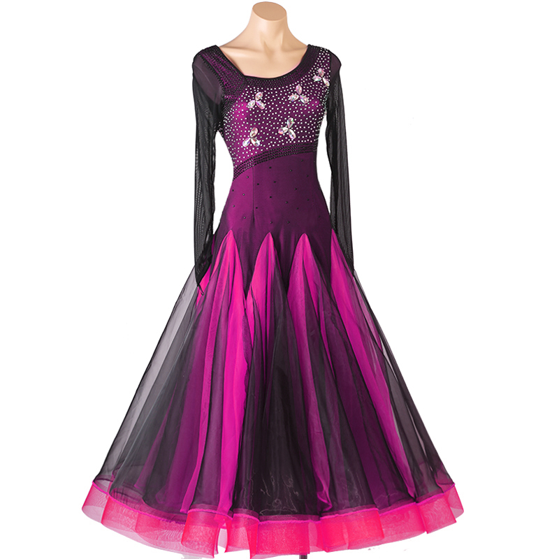 新作 レディース社交ダンス衣装 モダンダンス練習試合ドレスワンピース サイズ調整可 サイズS~XXL エレガントデザイン ミックス色