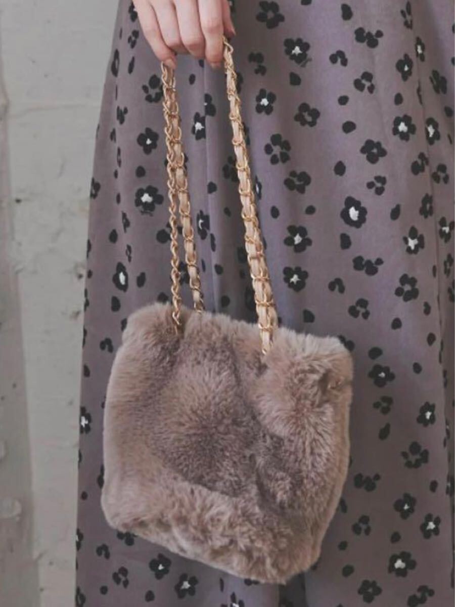 モコモコの見た目が可愛いフェイクファーBAGです。コロンとしたフォルムが小動物みたいな印象で、持ってるだけで癒されちゃうアイテム。
