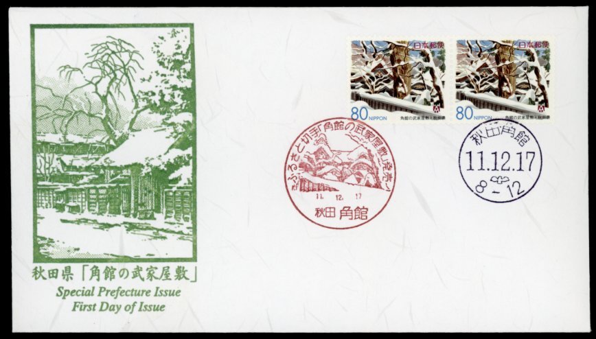 1393 【FDC】ふるさと 秋田県「角館の武家屋敷」[//鳴美版](解説書なし)