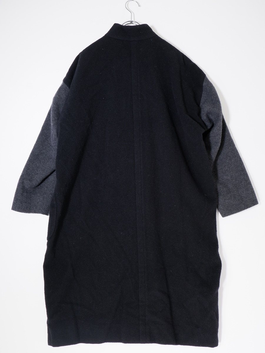 【素材感】やや起毛した柔らかなウール地 【透け感】なし 【裏地】あり 【ストレッチ】なし 【開閉デザイン】ボタン 【付属品(取り外し可)】なし 【商品情報】袖が配色切替デザインになったオーバーサイズコート。 |
