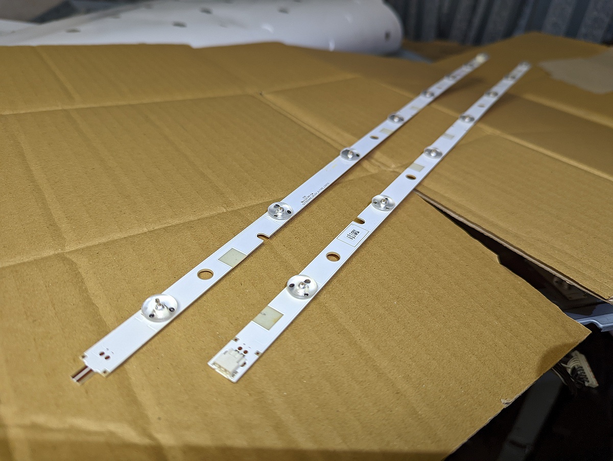 | ■REGZA 42Z8 42J8 液晶パネル用 LEDバックライト 単体 全数テスト済み 東芝 TOSHIBA テレビ修理 複数同梱可 バックライト不点灯の補修に。【現在、中間のつなぎ目を補修済みの個体を無料サービスとしてお送りします(ただしリード線が外れやすいため、装着までに外れた場合はハンダゴテによる補修が必要になります)】 |