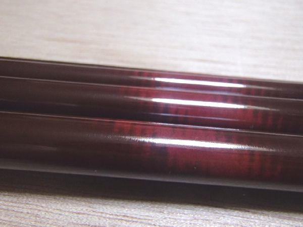 輸入ブランク。10フィート #6 4pcs。IM-6 medium-fast action バット最大径 10.05mm 重量69g 画像には写っていませんが、クロスバッグ付。色はクリアブラウン。未使用品ですが、運搬などに伴う微細な擦れや傷はあります。また、検品のせいでしょうか、フェルール部のオスの部分に、薄い擦れがあります。トップは、トップガイドを取り付けたときに他のピースと同じ長さにそろうよう、わずかに短か目となっています。 フェルールの抜き差しもスムーズで、きっちりと作られているように見えます。