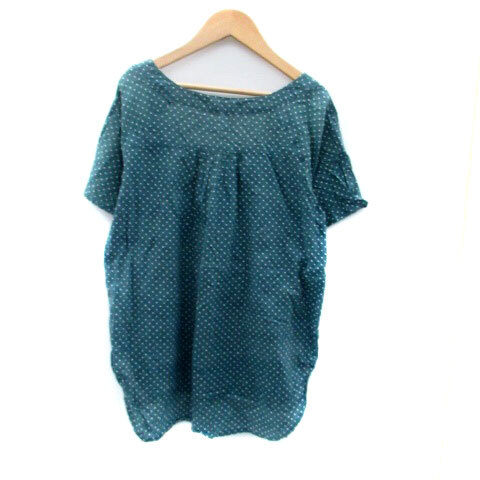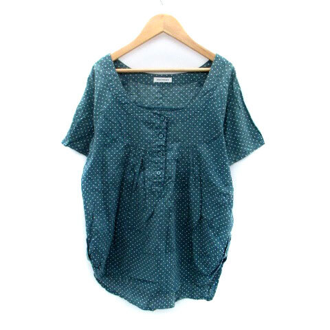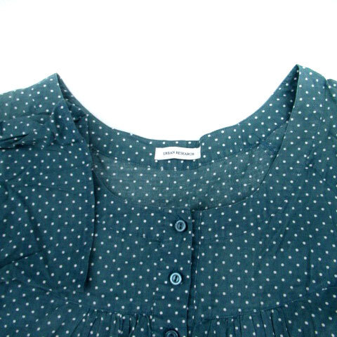 アーバンリサーチ URBAN RESEARCH ブラウス カットソー ラウンドネック 半袖 ドット柄 F 緑 グリーン オフホワイト /HO36 レディース