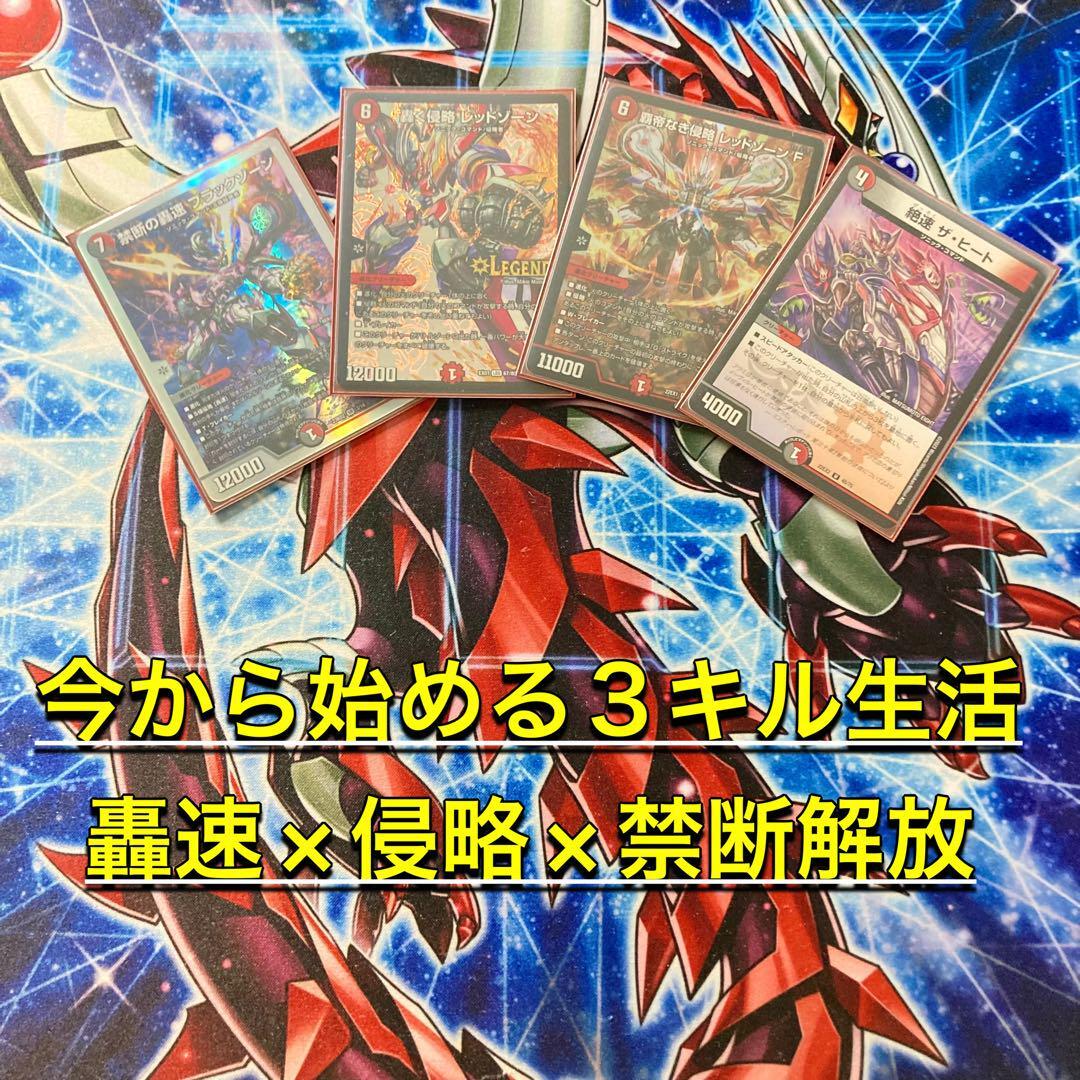 ☆どんな相手だろうと最速で突破する本格構築の赤黒バイクデッキ ◆3ターン目バイクからのレッドゾーンFを絡めた最速侵略でワンショット。更にGストライクやドキンダムソウルによる禁断解放での強制終了などバイクの戦略と強みを乗せた構築 ◆レッドゾーンFやブラックゾーンなど相性の良いカードや必須、必要パーツを揃えた本格構築です ☆インナースリーブにオーバースリーブの二重スリーブの即実戦仕様 ↓↓↓デュエマデッキなどはこちら #かしこまデュエマデッキ #かしこまバイクデッキ #かしこまデュエマローグレードデッキ ■メインデッキ 4枚《Re:奪取 トップギア》 4枚《赤い稲妻 テスタ・ロッサ》 4枚《影速 ザ・トリッパー》 4枚《絶速 ザ・ヒート》 4枚《轟音 ザ・ブラック GS》 4枚《ドキンダムの禁炎霊》 2枚《暴走 ザバイク/ブンブン・バースト》 3枚《龍装者 バルチュリス》 2枚《覇帝なき侵略 レッドゾーンF》 4枚《轟く侵略 レッドゾーン》 4枚《禁断の轟速 ブラックゾーン》 1枚《伝説の禁断 ドキンダムX》