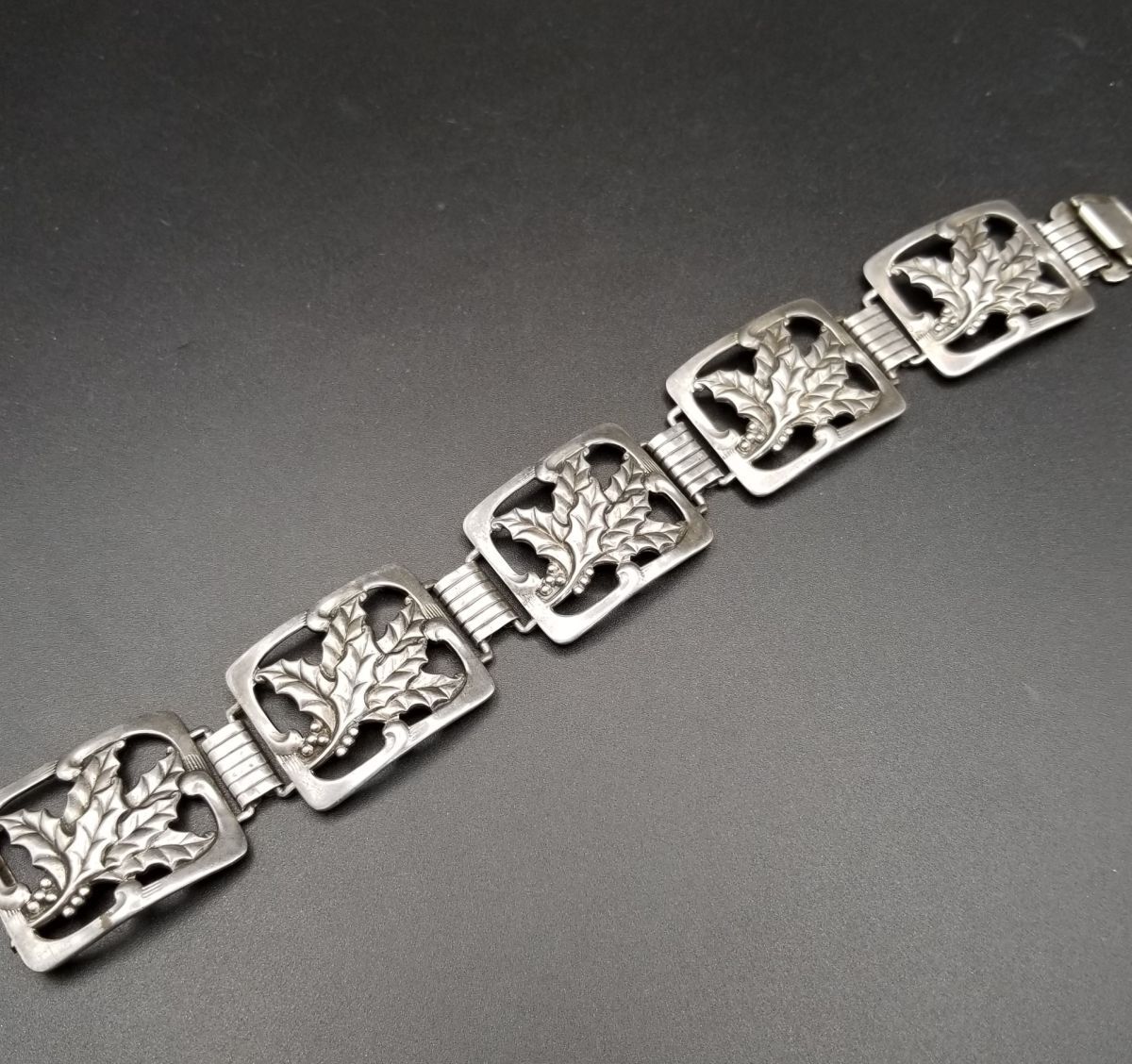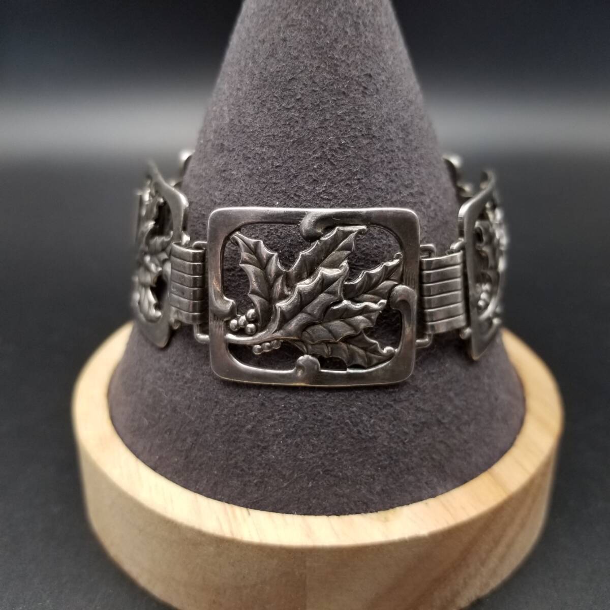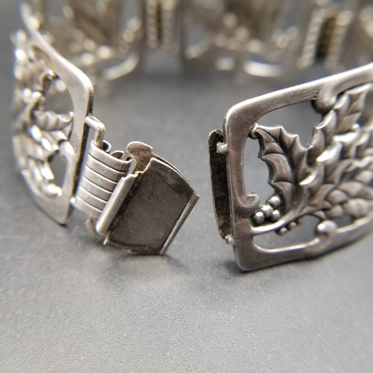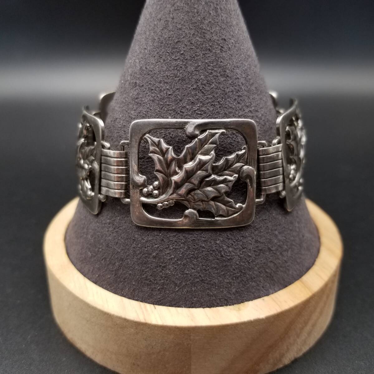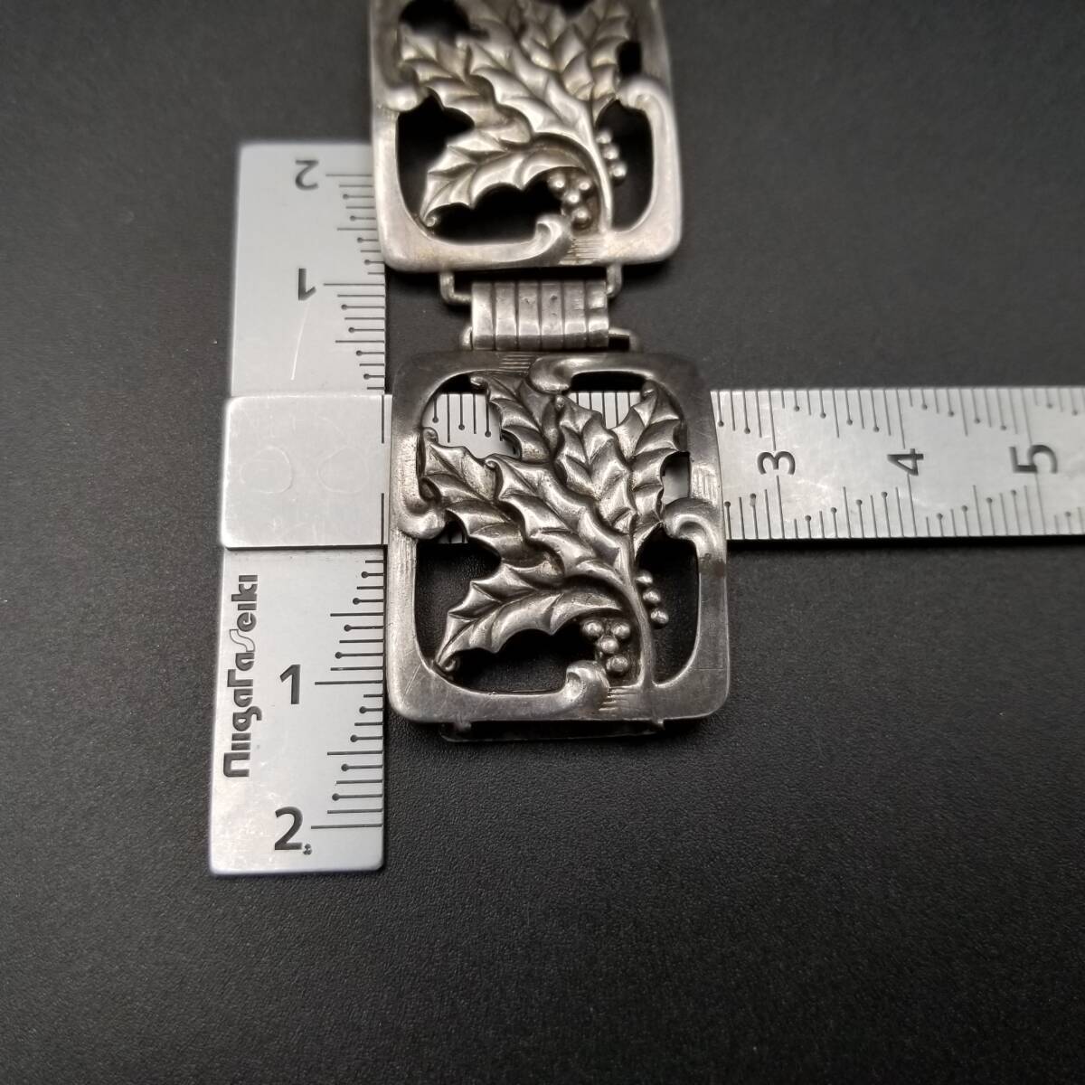 ヒイラギの葉 ホロアウト パネルチェーン 925 シルバー ヴィンテージ クリスマス ブレスレット 銀細工 レトロ 自然派 季節感 Y21-J