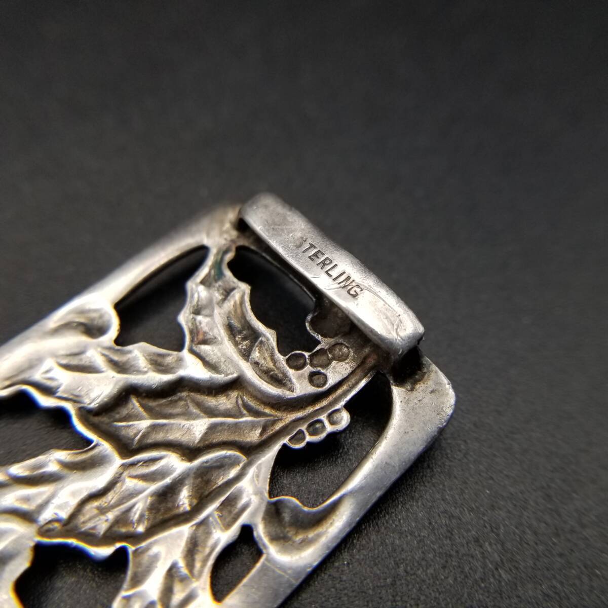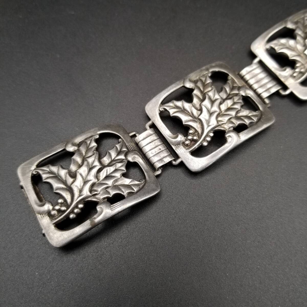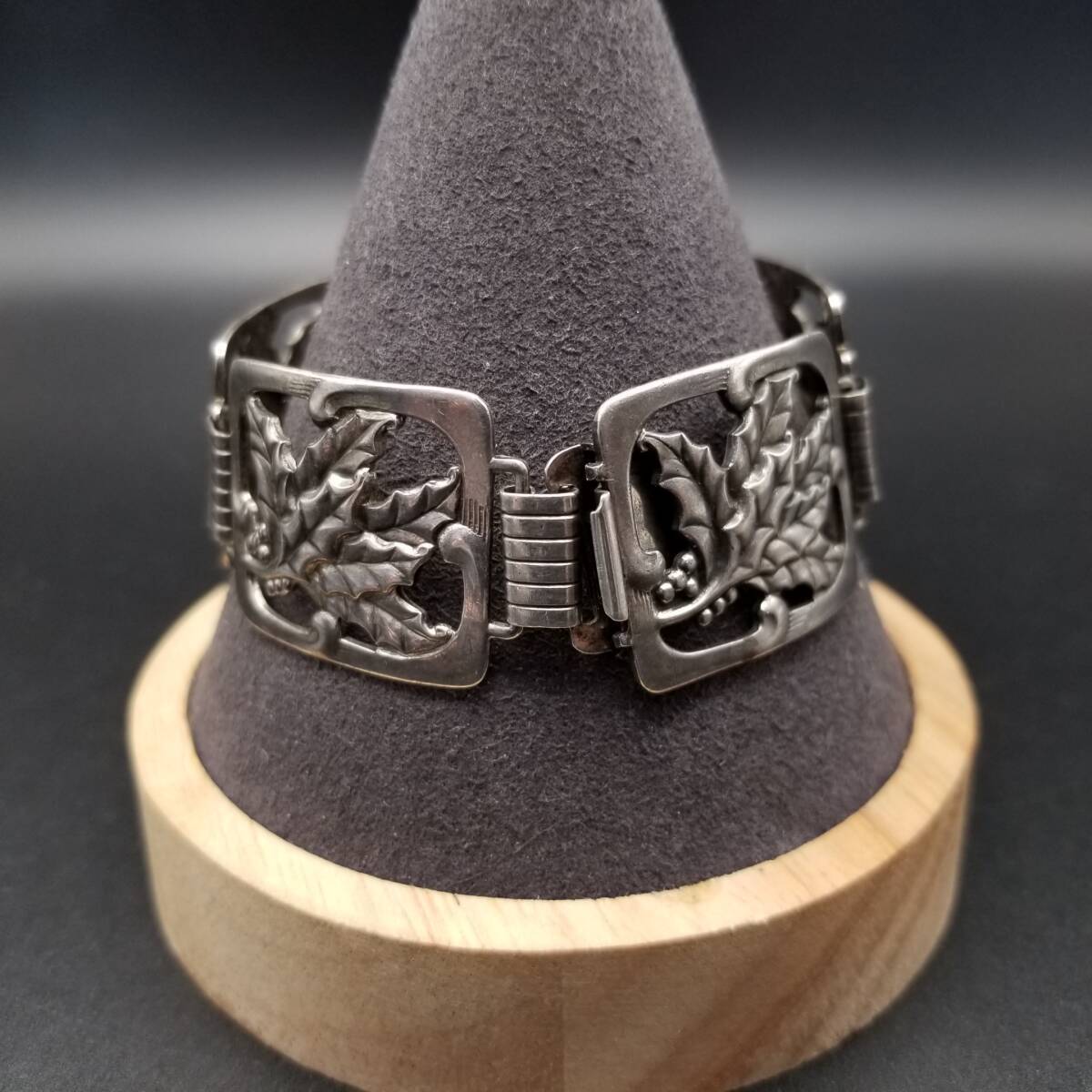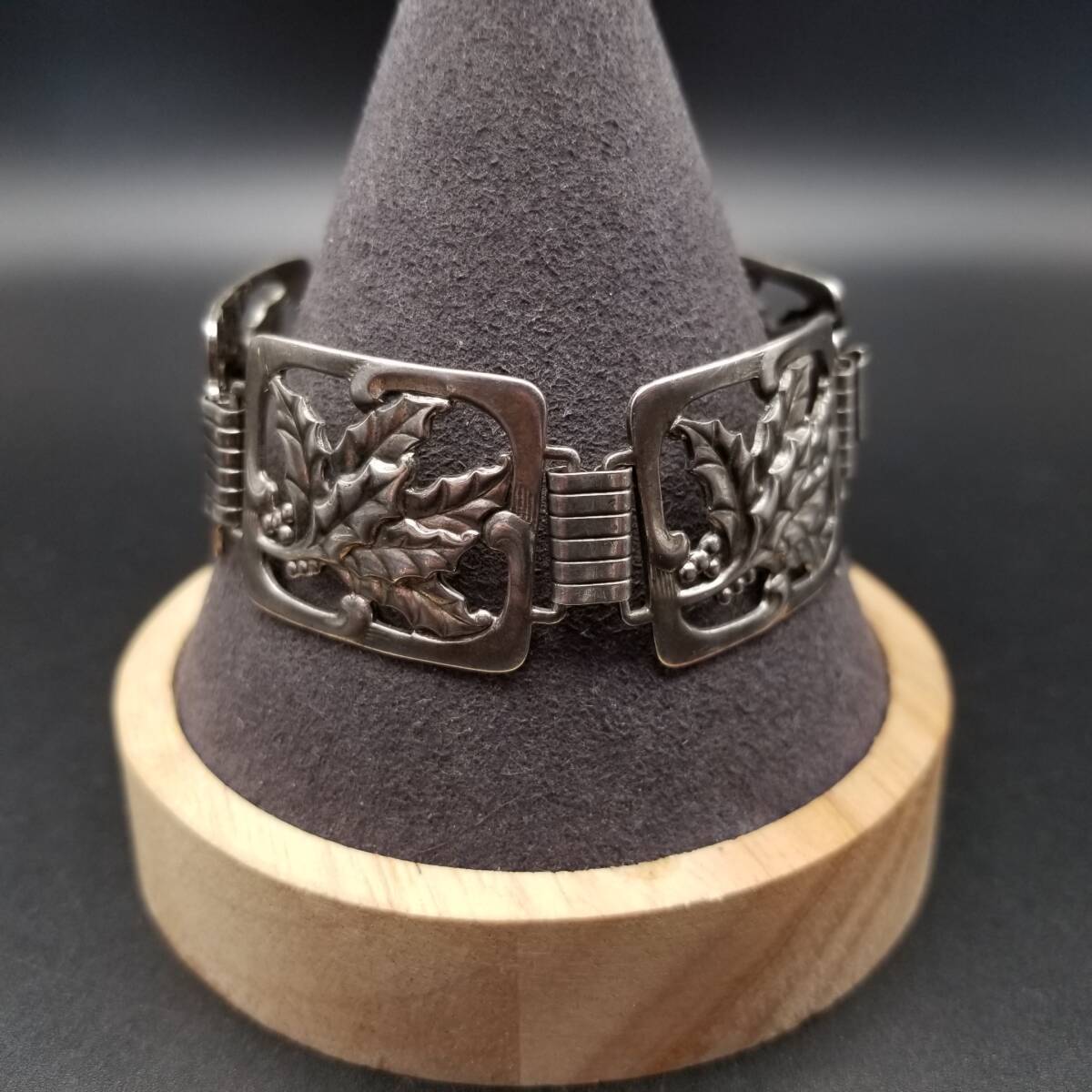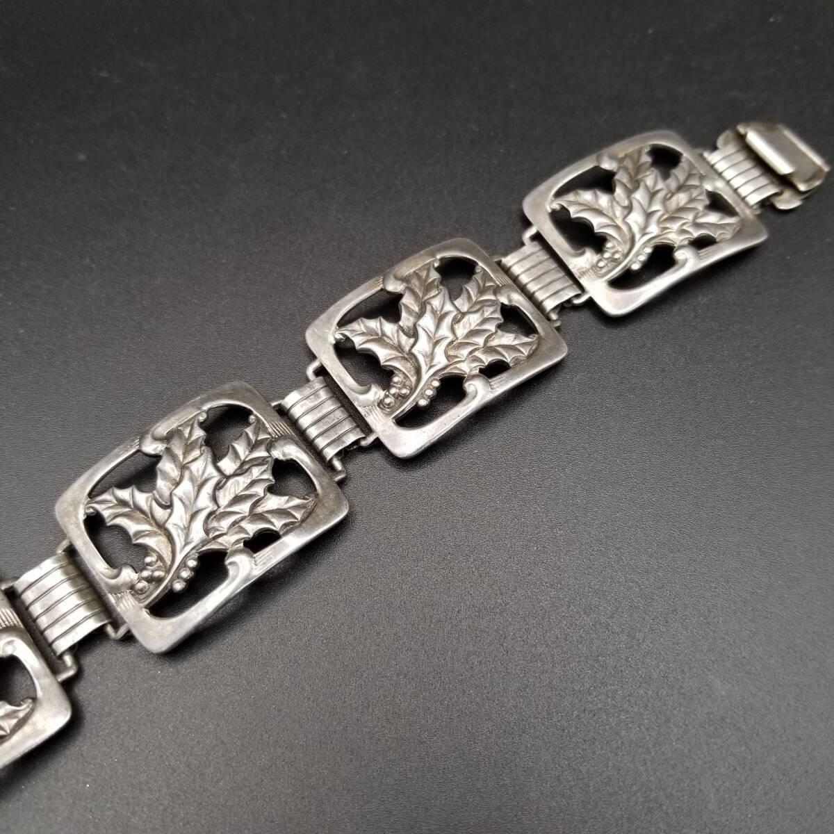ヒイラギの葉 ホロアウト パネルチェーン 925 シルバー ヴィンテージ クリスマス ブレスレット 銀細工 レトロ 自然派 季節感 Y21-J