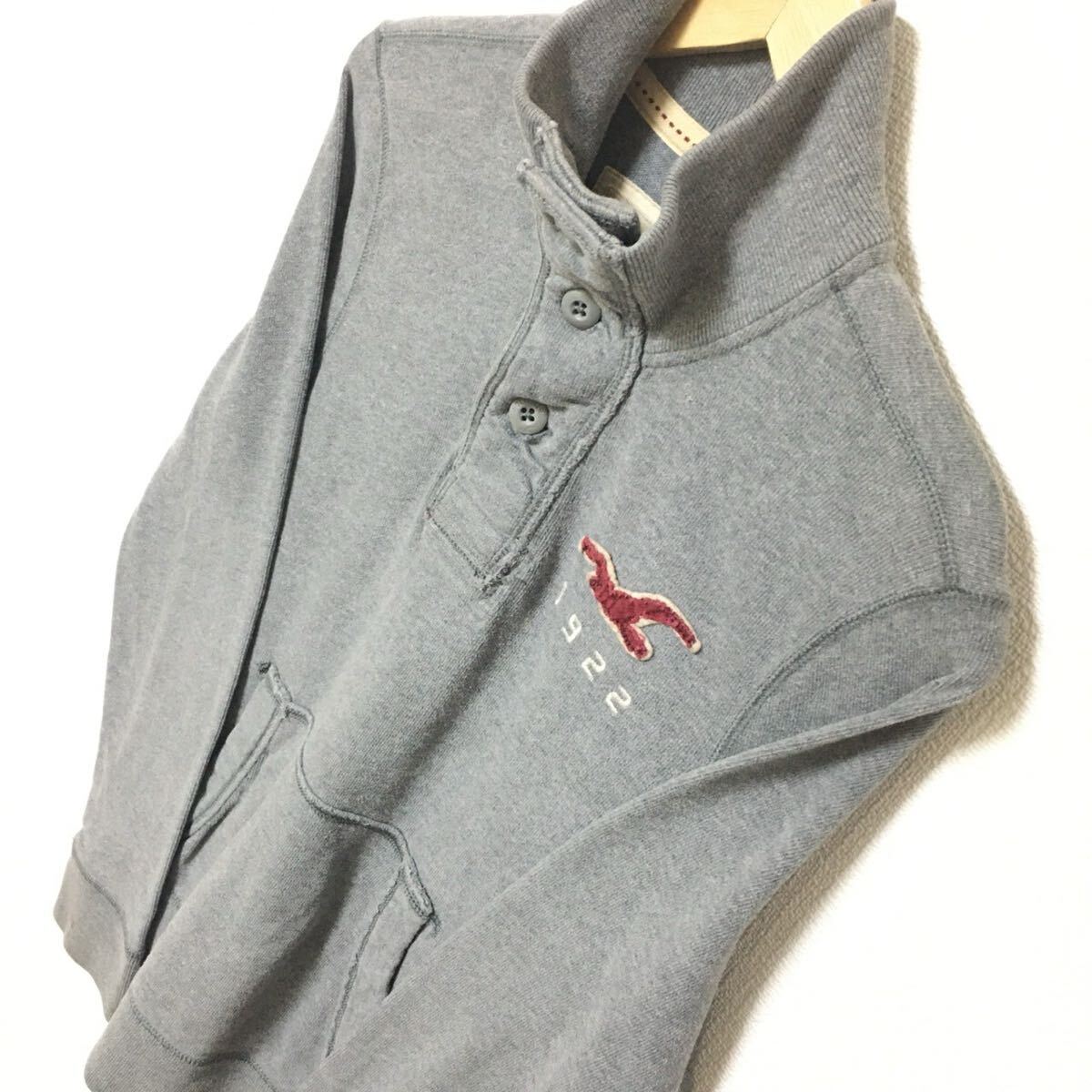 柔らかな素材で着心地が良いHOLLISTERのトップスです。落ち着いたグレーの色味も合わせやすく、様々なコーディネートに活躍します。Tシャツの上に羽織ったり、ジャケットのインナーにしたりと、幅広い着こなしが楽しめると思います!左袖口に使用感はありますが、良い味としてお楽しみください。