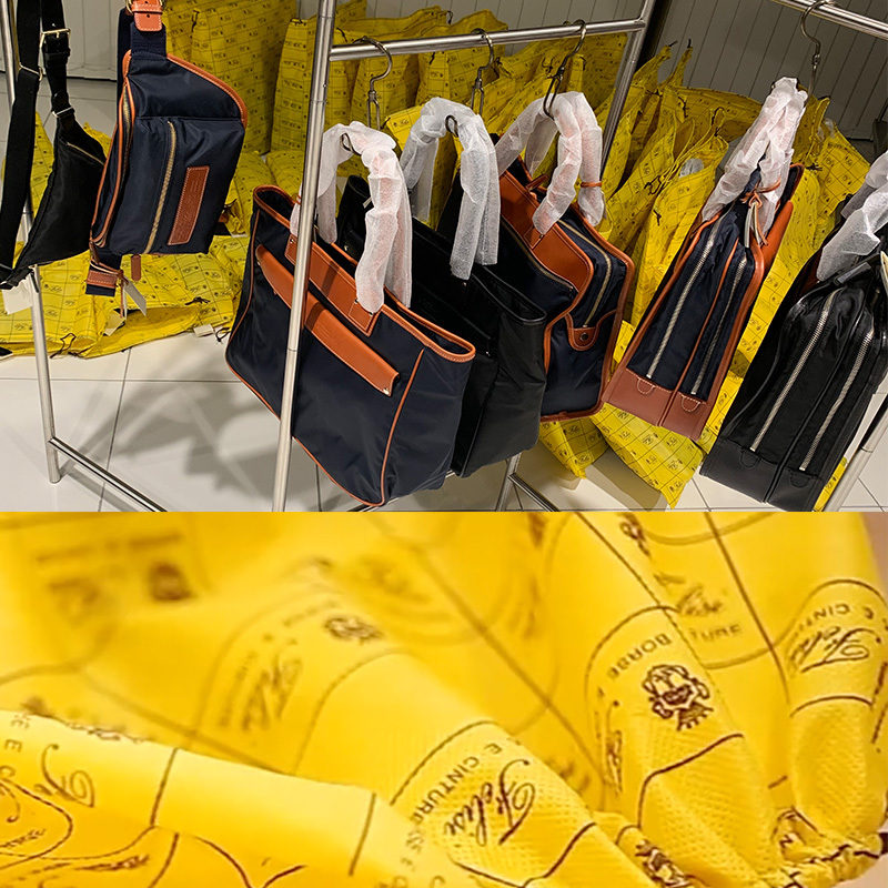 シルクのような光沢を持つこのナイロン生地は、イタリアンレザーに匹敵する鮮やかな魅力を放ち、