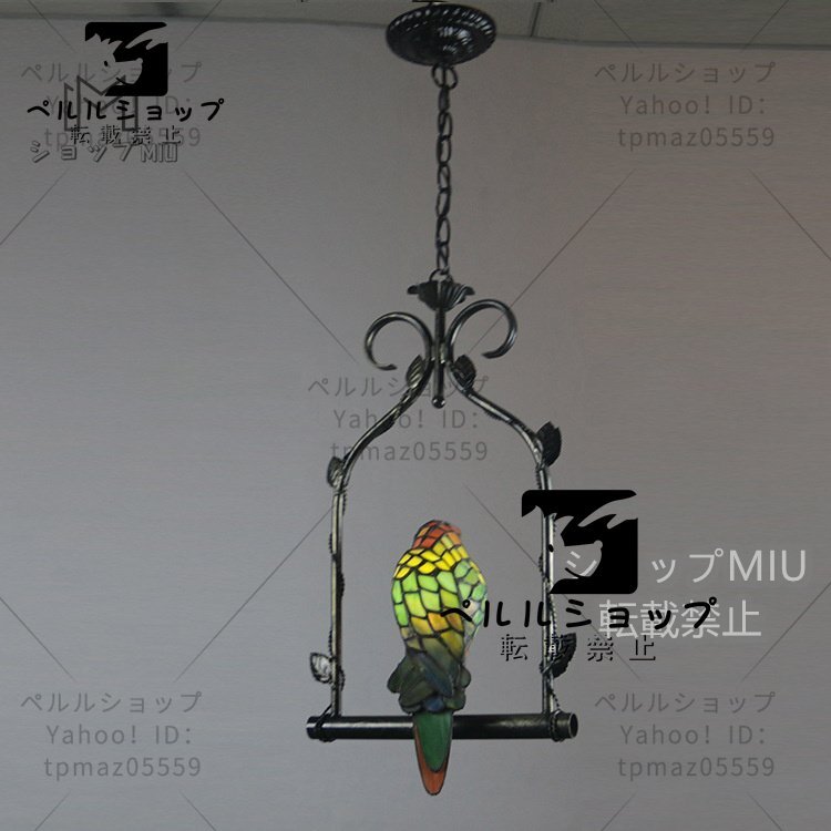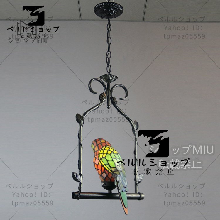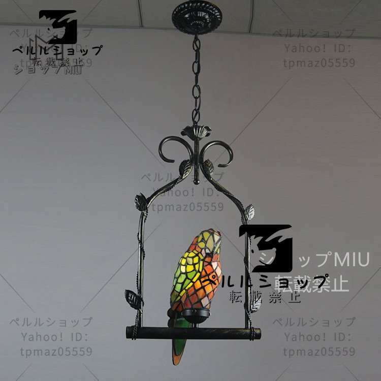 ◆極上品◆芸術品◆ステンドランプ ステンドグラス 鸚鵡 ペンダントライト オウム 吊り下げ照明 ティファニー 装飾品 照明
