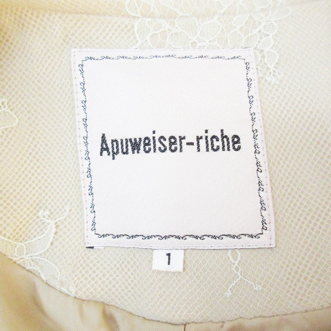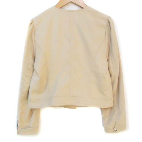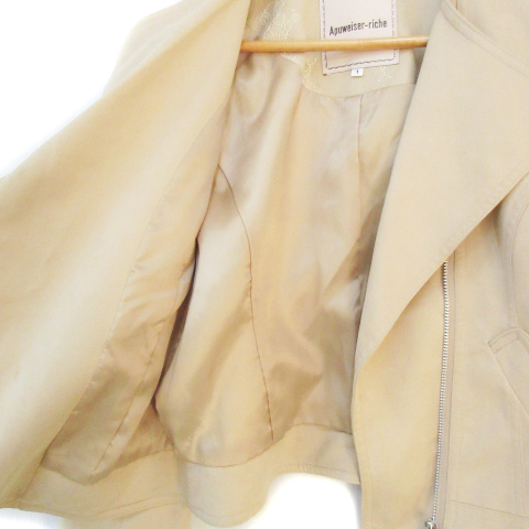 アプワイザーリッシェ ライダースジャケット ノーカラージャケット ミドル丈 総裏地 ジップアップ 1 S ベージュ /FF23 レディース