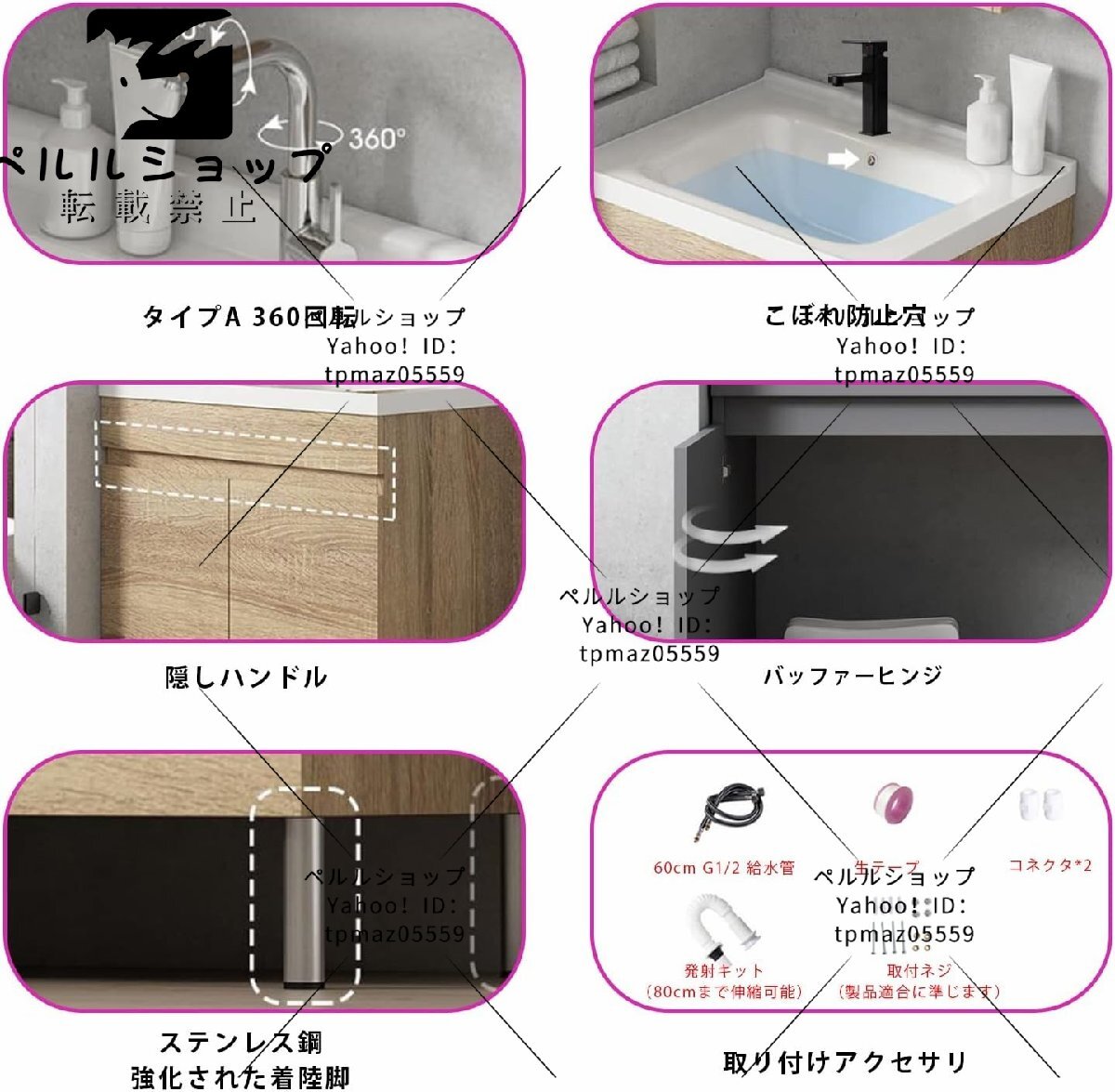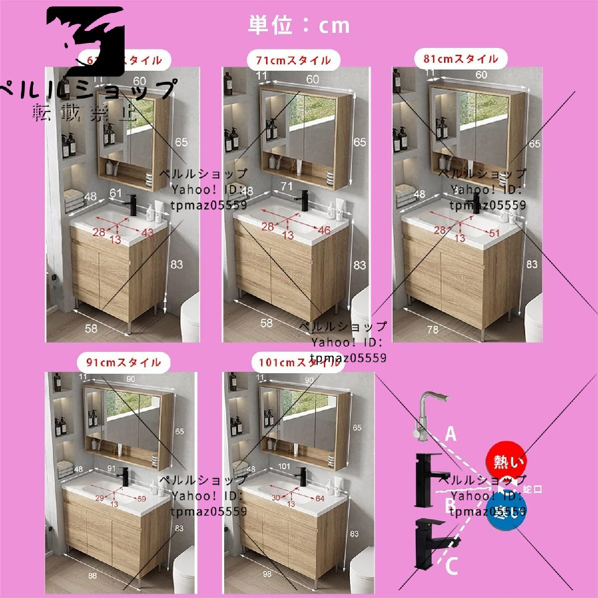パッケージ内容:洗面台/洗面台+壁掛けミラーキャビネット、冷温水蛇口、給水パイプ*2、原料ベルト、コネクター、汚水キット(伸長85cm)、金具付属品。