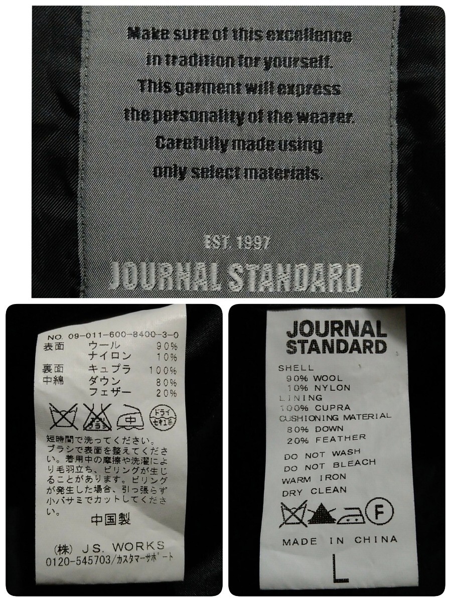 ▼素材:表地-ウール90% ナイロン10% 裏地-キュプラ100% 中綿−ダウン80% フェザー20%