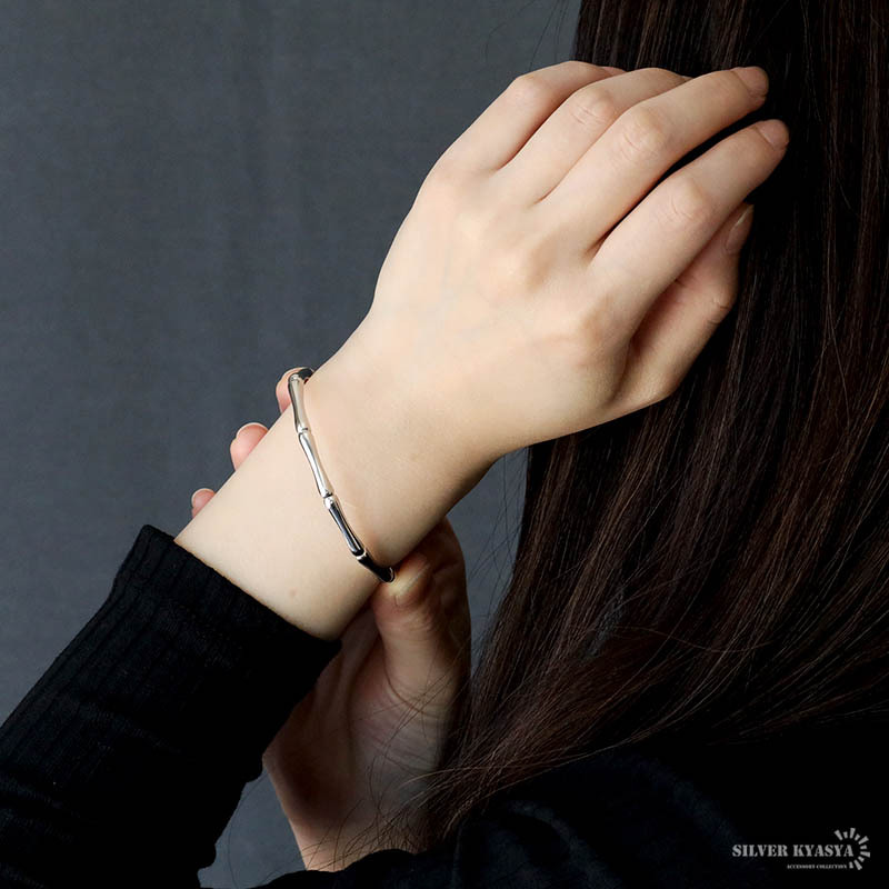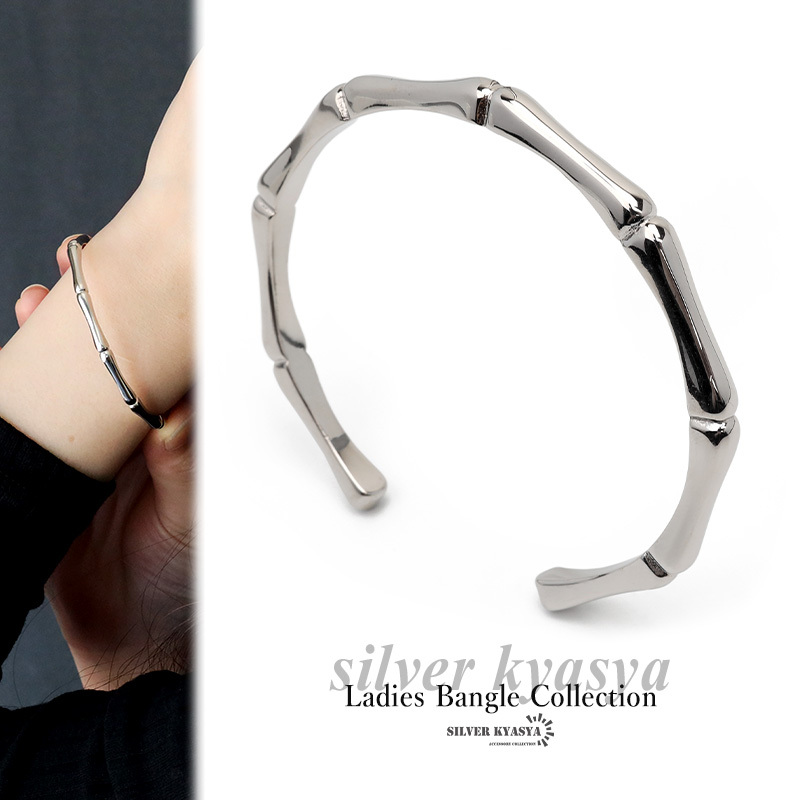 シルバー925 バングル レディース シルバー レディースバングル バンブー 竹 節 ぷっくり 銀色 金属アレルギー