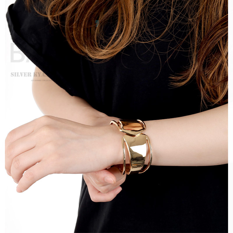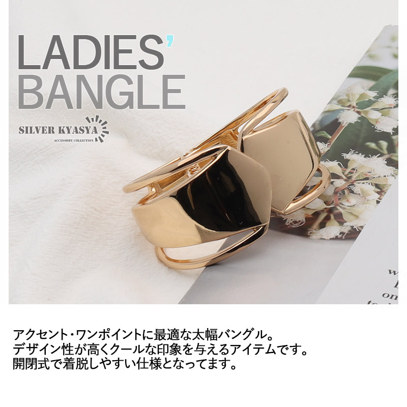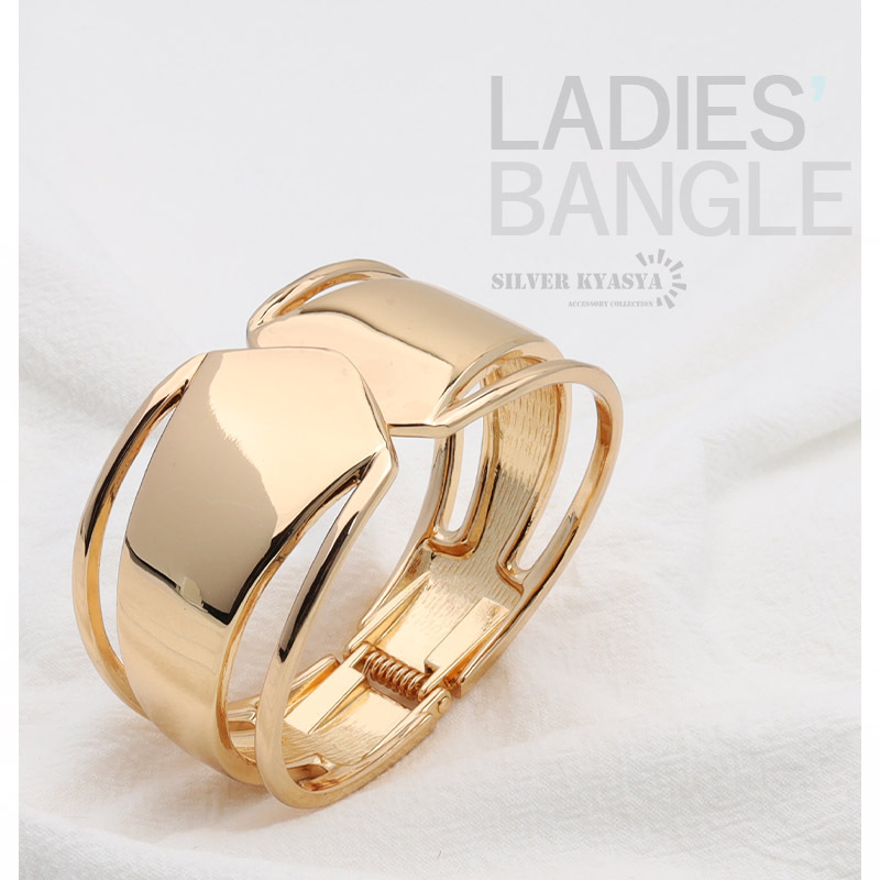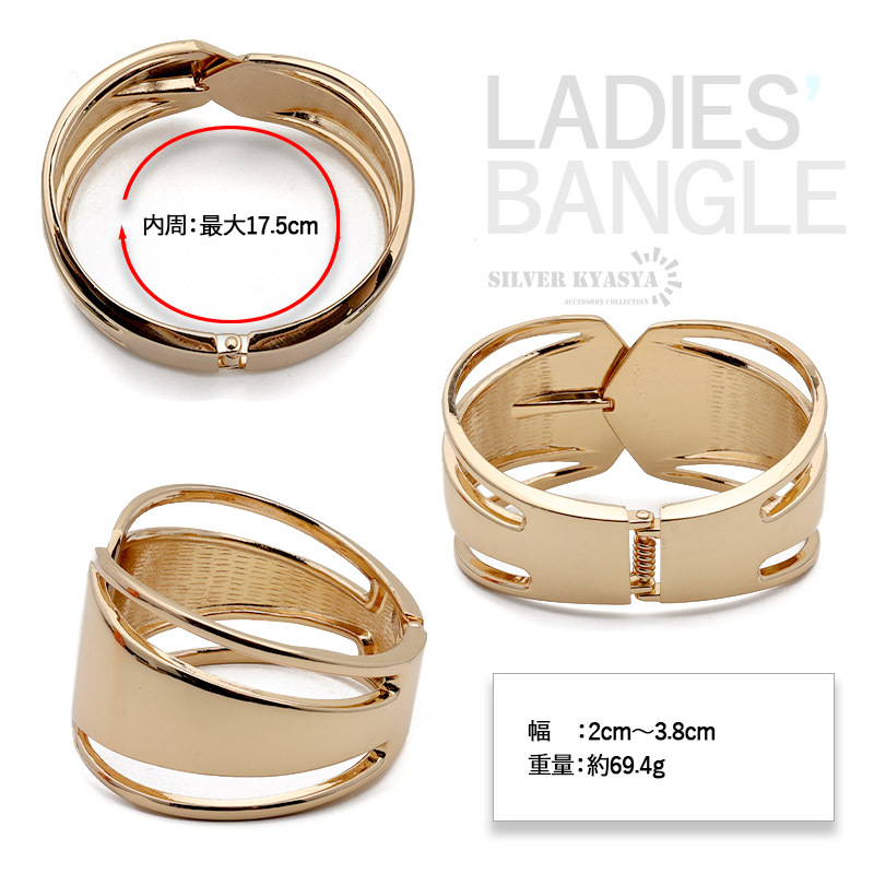 幾何学 ワイドバングル シンプルバングル 透かし 太め 幅広 太めバングル 大ぶり ゴールド 開閉式 カジュアルバングル 腕輪 レディース