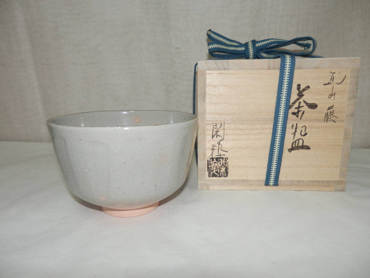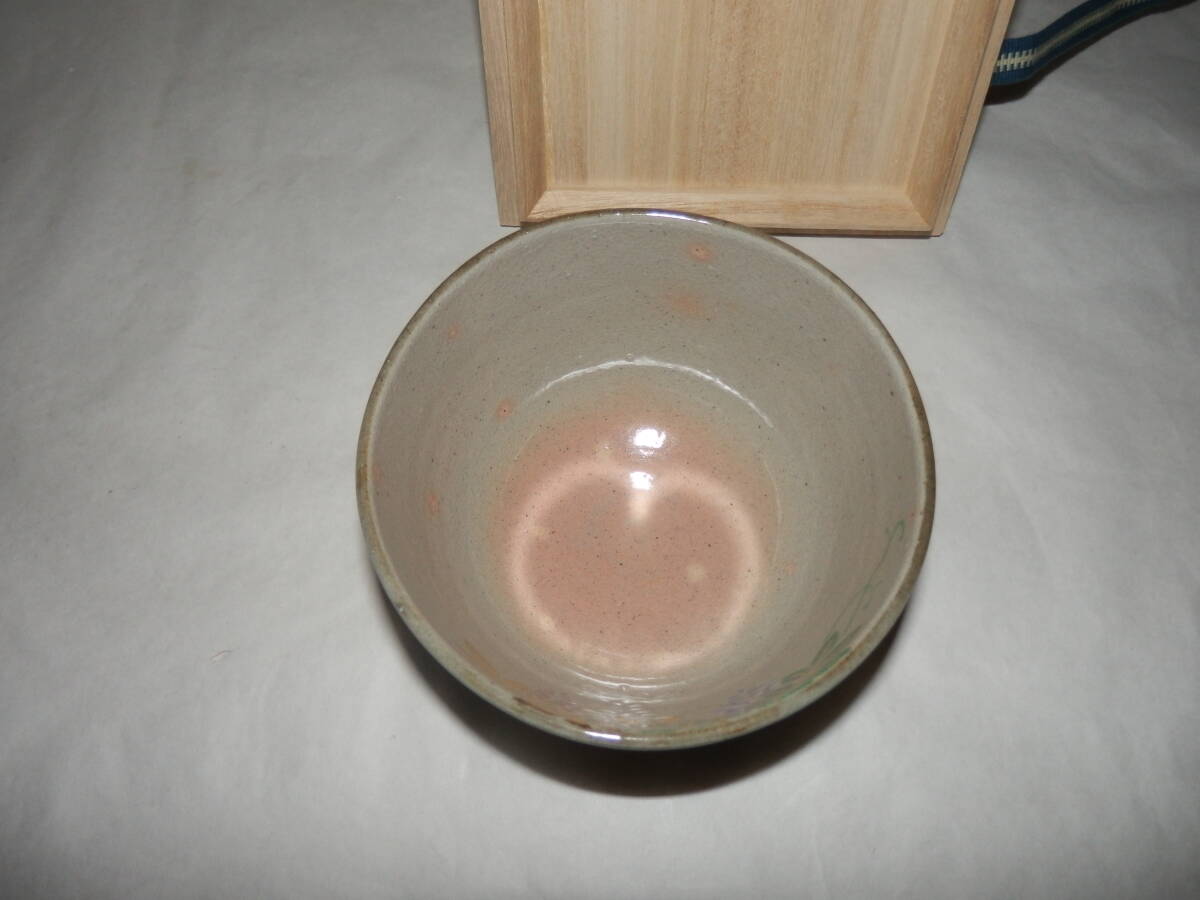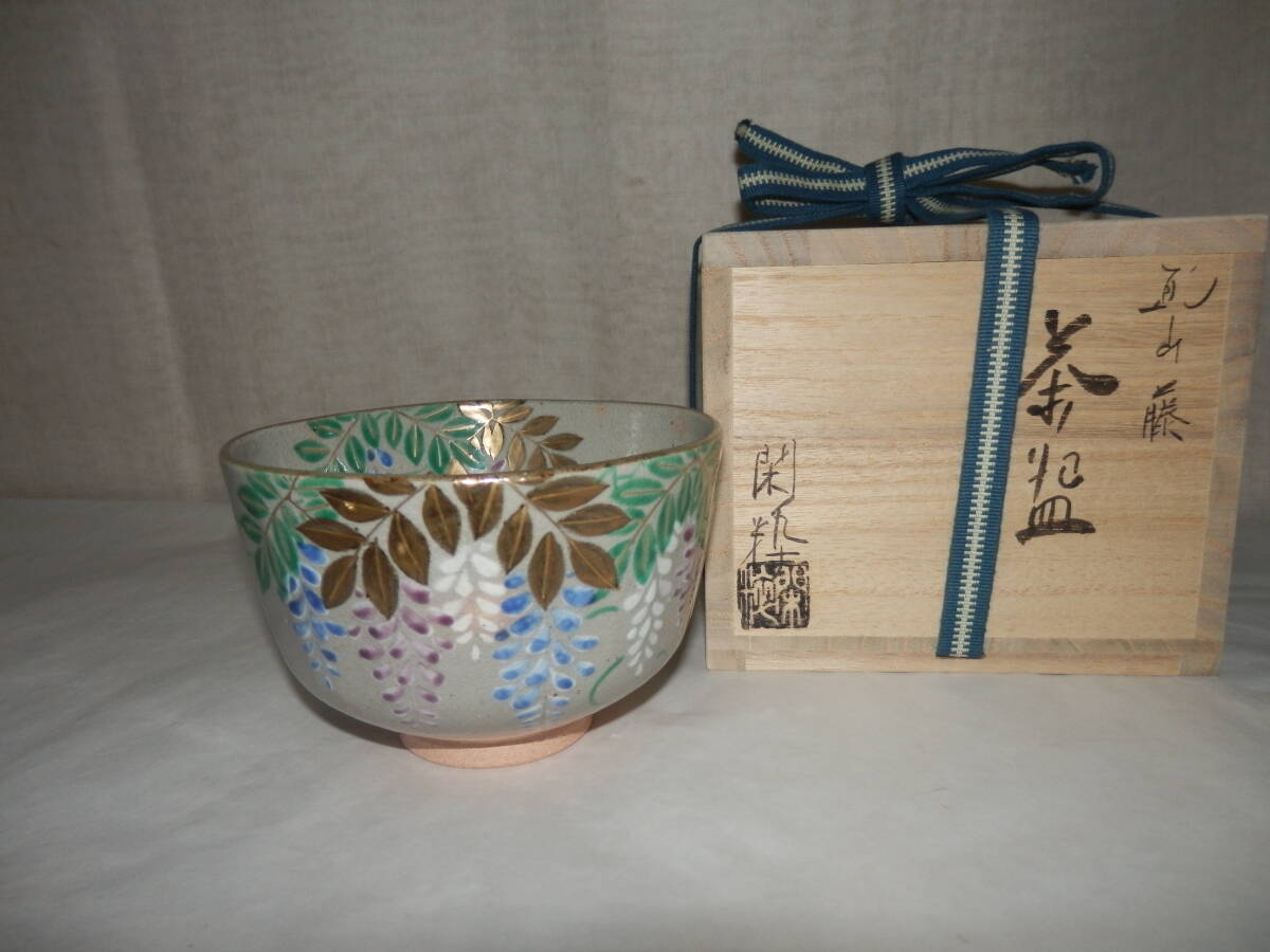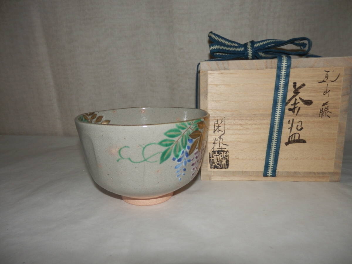 「新品・茶道具」杣山焼の南口閑粋さんの乾山写の茶碗です。藤です。 径約11.8cm 高さ約7.7cm 高台に閑粋の小判印有。 桐共箱。 どうぞ宜しく。
