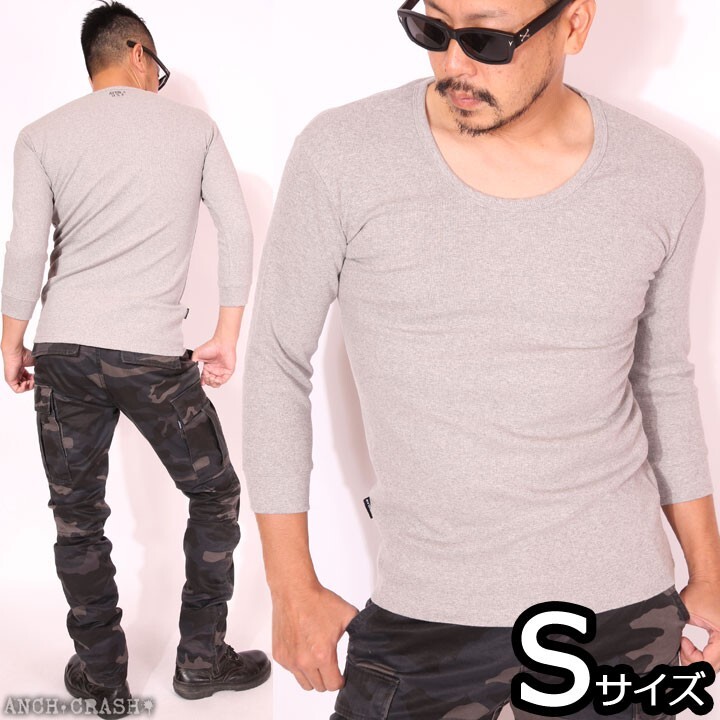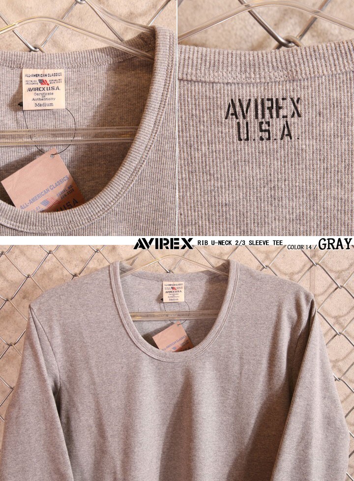 アビレックス AVIREX 7分袖 Tシャツ Uネック 無地 デイリーウエア 6143509 グレー【Sサイズ 】