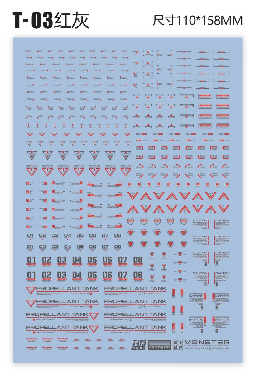MST-T03-R+GR Monster 1:100水転写式汎用コーションデカール (赤+グレー)